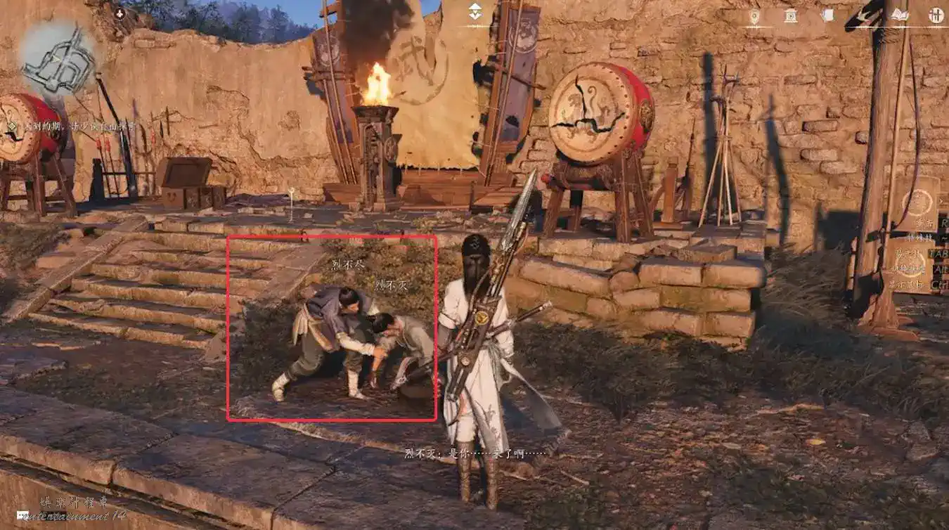2、地圖解鎖至將軍祠,攻破營地後,與喊住你的村民交談