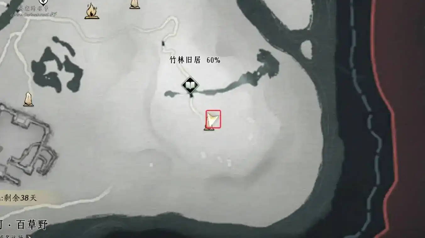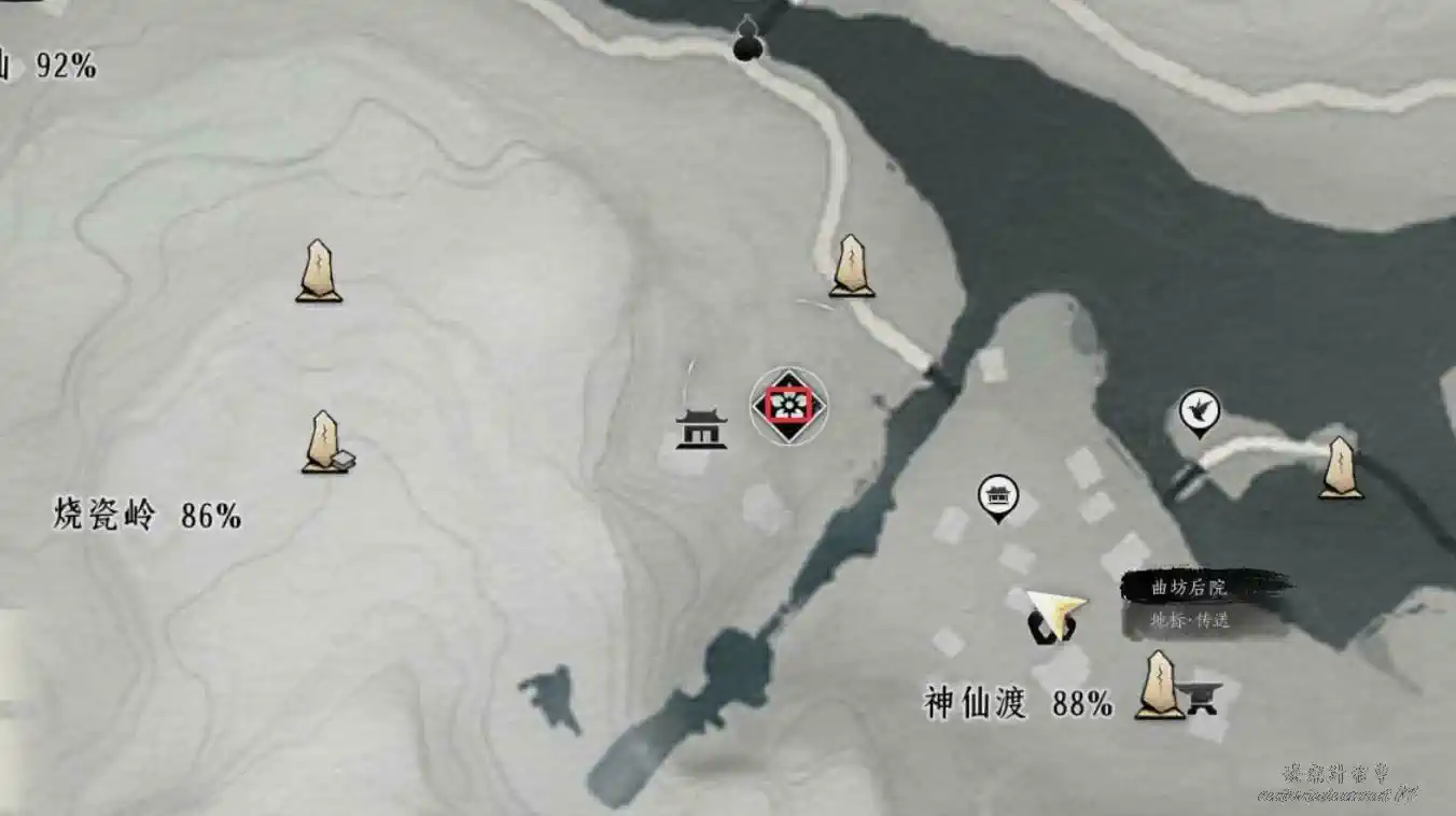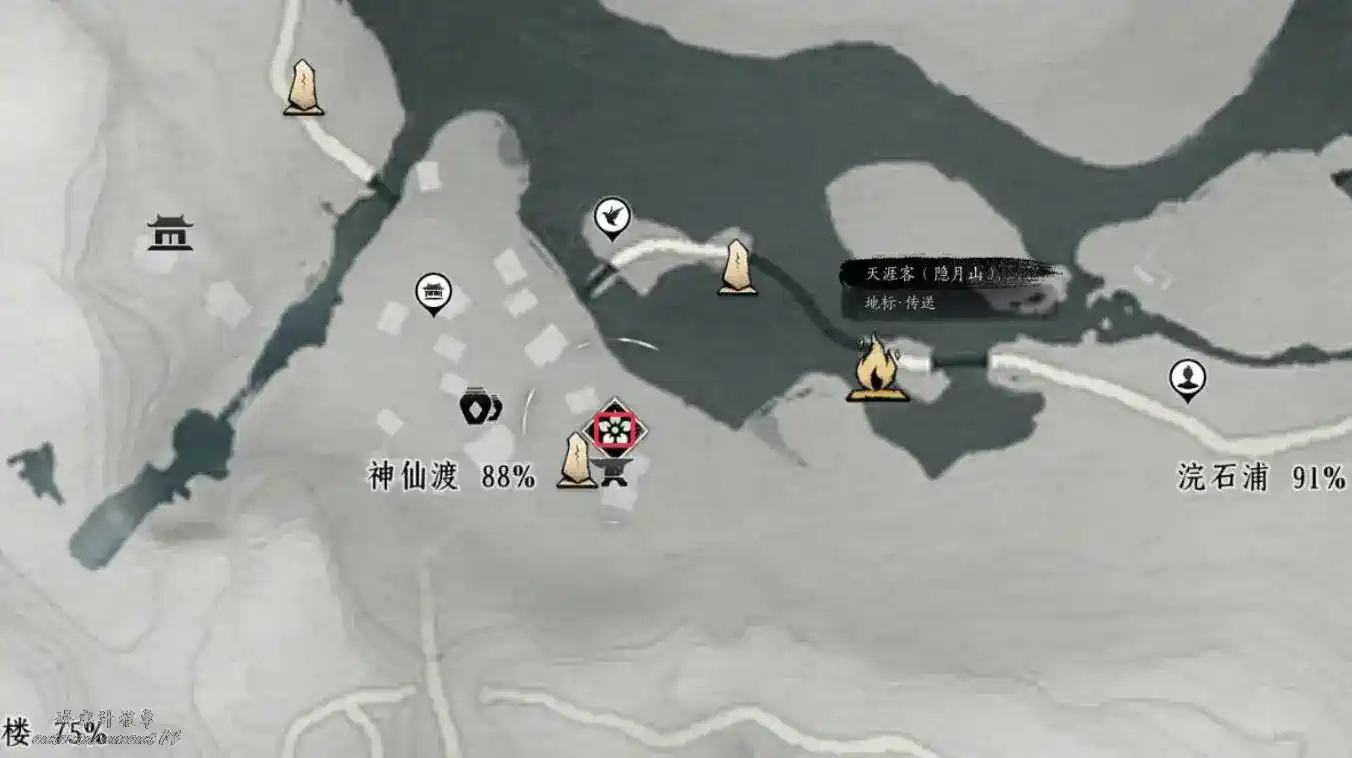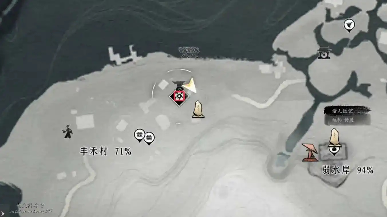活人醫館界碑附近(注意圖中所示是在地面上,不要誤點至弱水岸鎮守傳送)