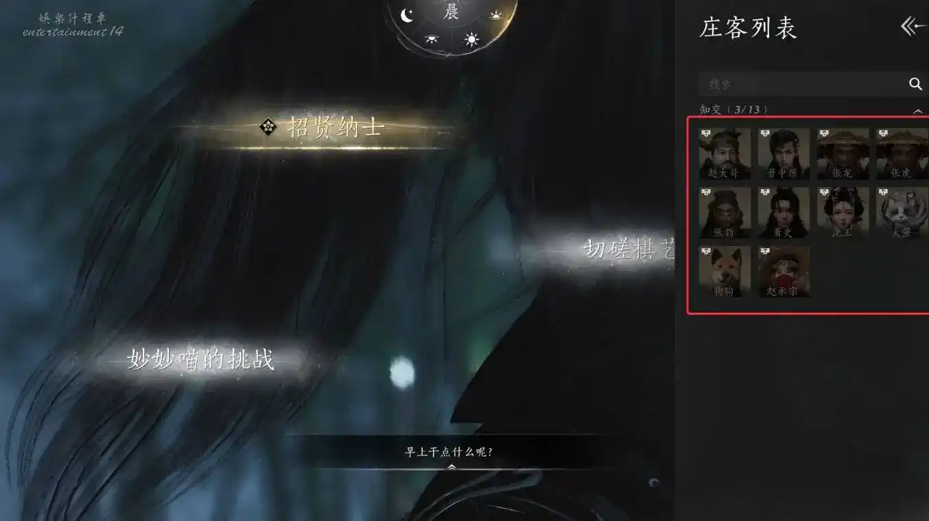 完成此任務,即可在家業-莊客管理,邀請趙承宗成為莊客。