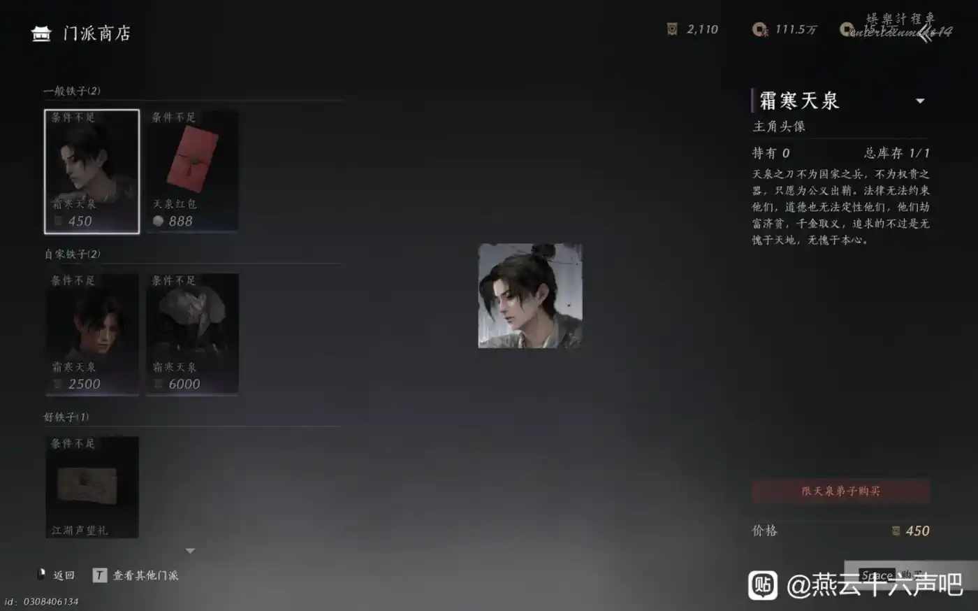 加入天泉門派,地位達到自家鐵子,可在門派商店通過江湖聲望兌換,全套共需要8500江湖聲望。