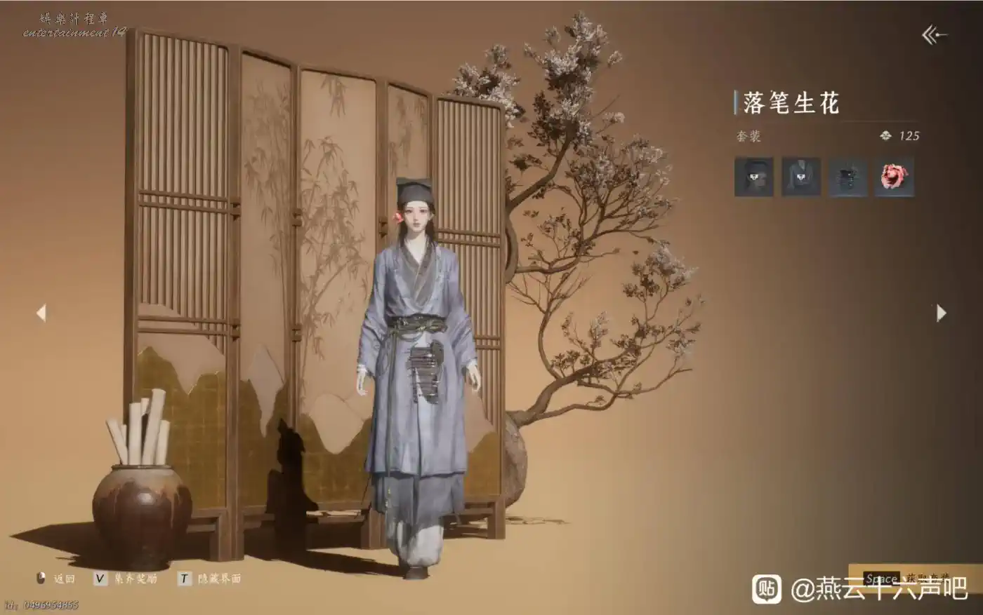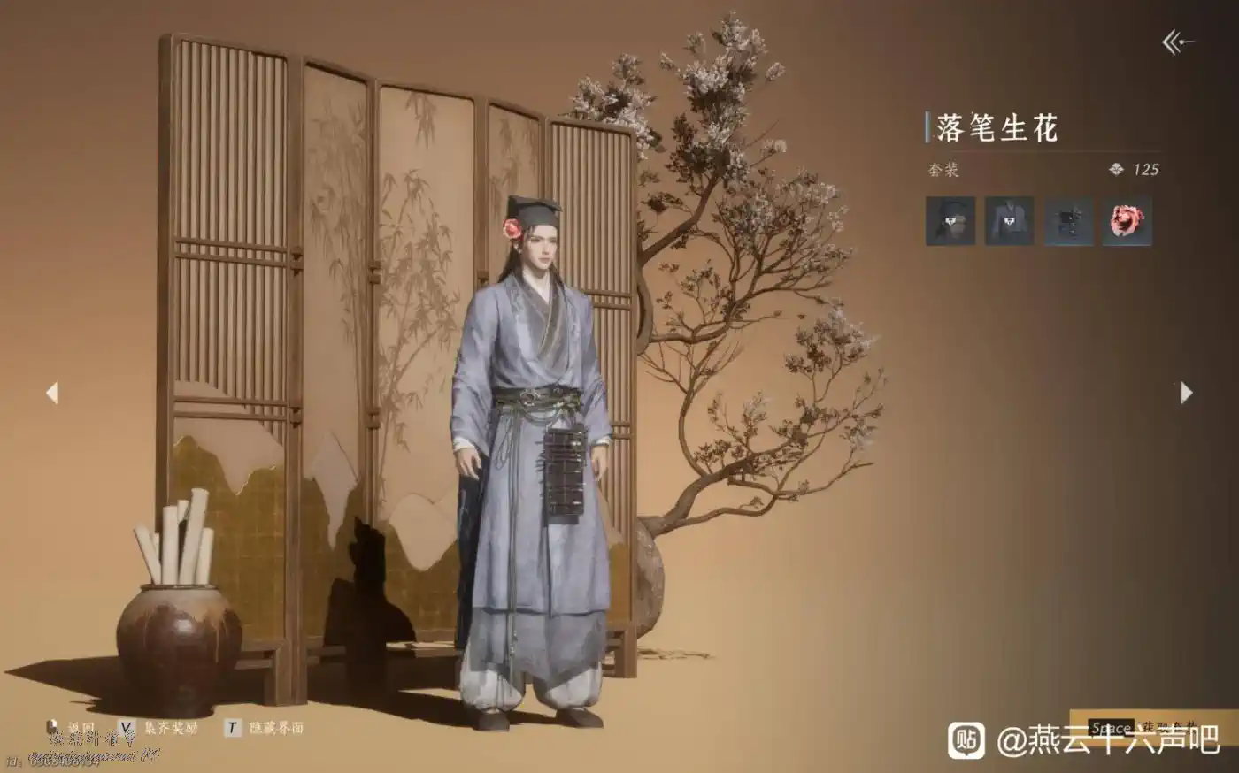打開遊戲菜單→營生,通過線索接到營生職業:文士,通過營生手記提升文士職業等階,達到文士·雅士獲得落筆生花套裝。