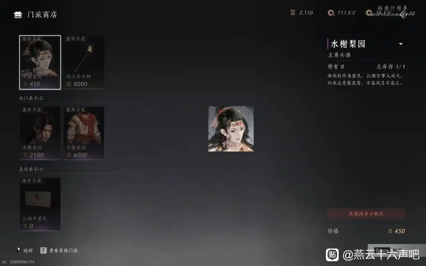 加入梨園門派,地位達到[內門弟子],可在門派商店通過江湖聲望兌換,全套共需要8500江湖聲望。