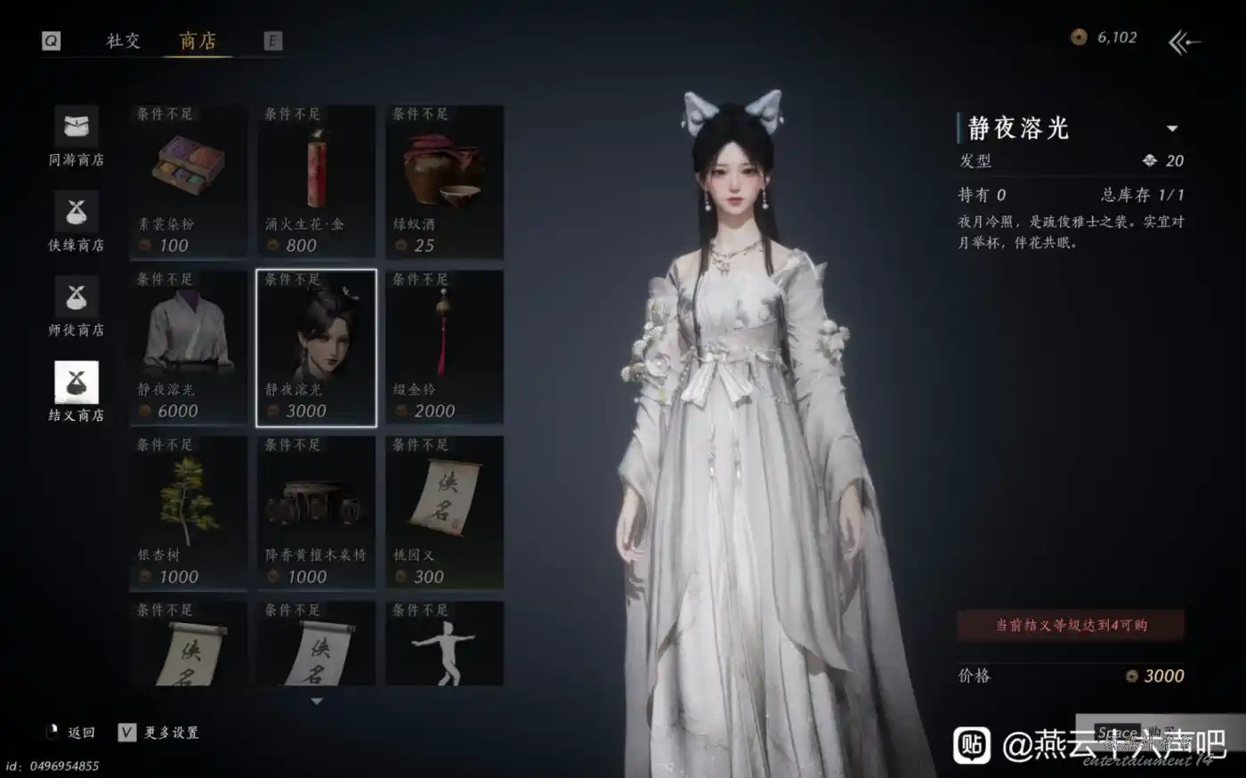 結義等級達到4級可在結義商店花費9000點和合花錢兌換靜夜溶光。
