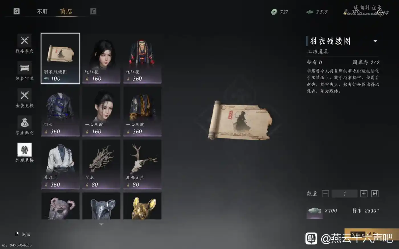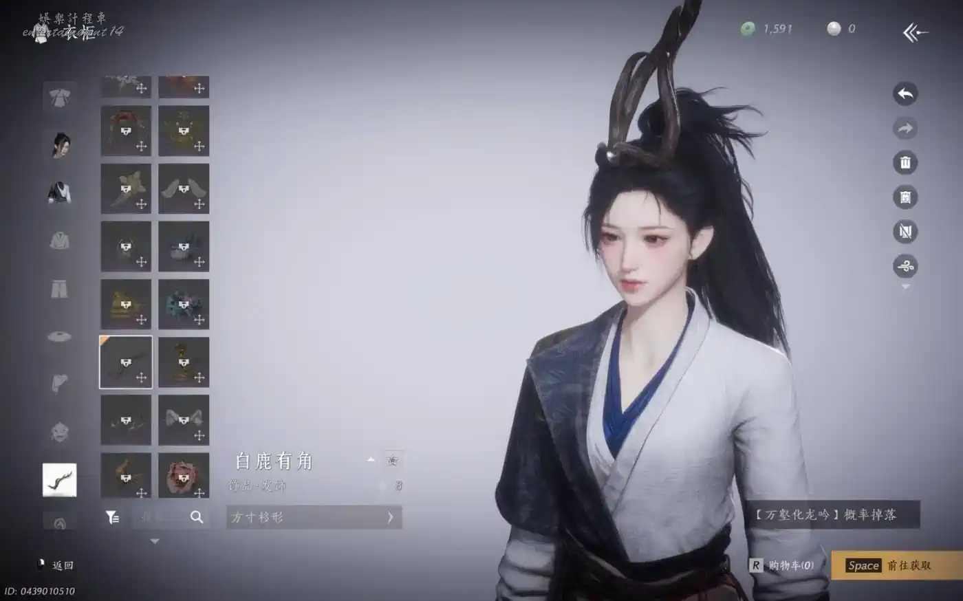 遊戲菜單→不肝→商店→外觀兌換,可選擇購買外觀白鹿有角,80不肝外觀券,不肝外觀券可通過武林路錄挑戰、試劍、俠境掉落的外觀箱開出;或通過挑戰往期俠境萬壑化龍吟掉落的萬壑寶箱幾率開出。