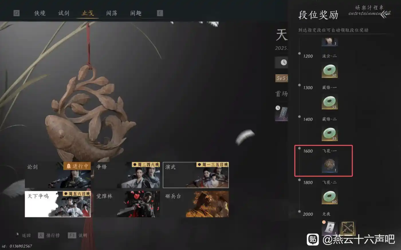 在蕤賓同音賽季的天下爭鳴玩法中,首次達到飛花段位獲得。
