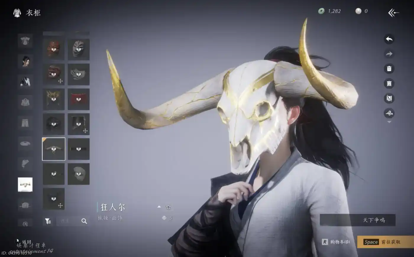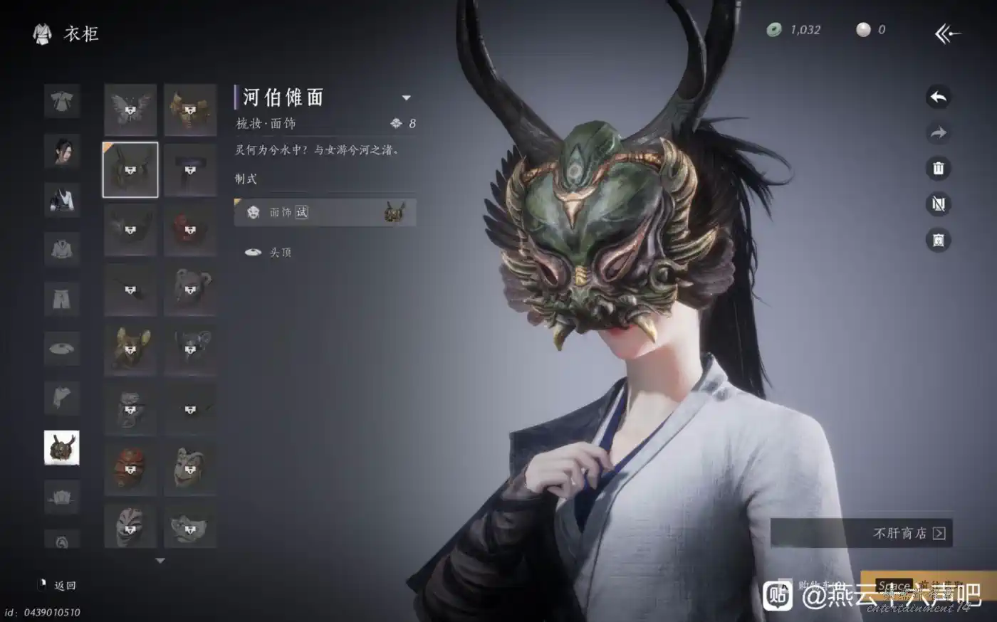 遊戲菜單→不肝→商店→外觀兌換,可選擇購買外觀河伯儺面,80不肝外觀券,不肝外觀券可通過武林路錄挑戰、試劍、俠境掉落的外觀箱開出;或通過挑戰河伯鎮守掉落的天上來外觀箱幾率開出。