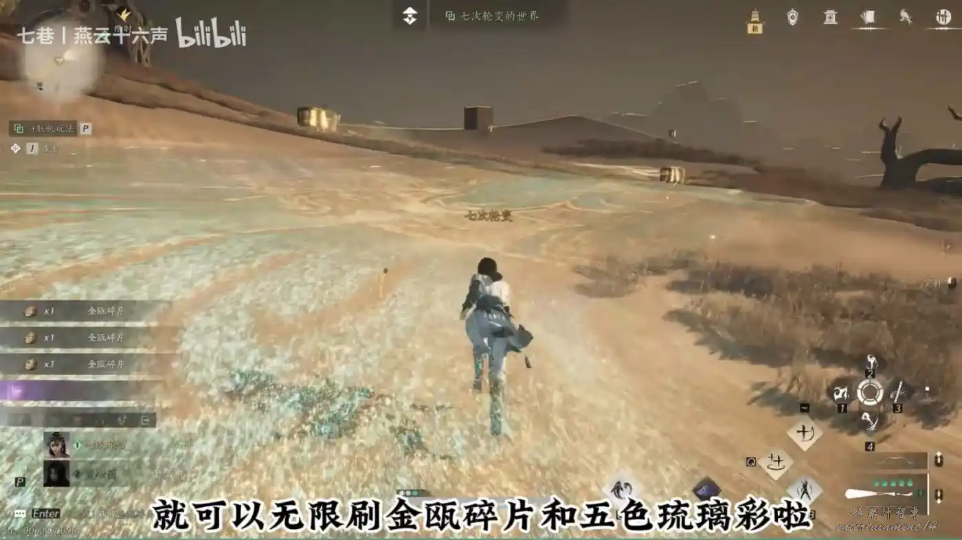 來到紅圈位置後將時間調整為午時,退到登陸頁面再進遊戲,這樣就能反覆刷新天氣了(如果卡不出天氣,是單純的運氣問題,如何判斷是否修復,看天氣是否變化),刷出浮影風沙天氣後,我們切換扇子打幻影金鷗鳥,摸完掉落物材料出區域再回來,就可以無限刷出幻影金鷗鳥,然後反覆操作就可以無限刷金甌碎片與五色琉璃彩了。