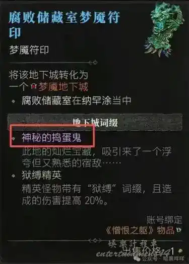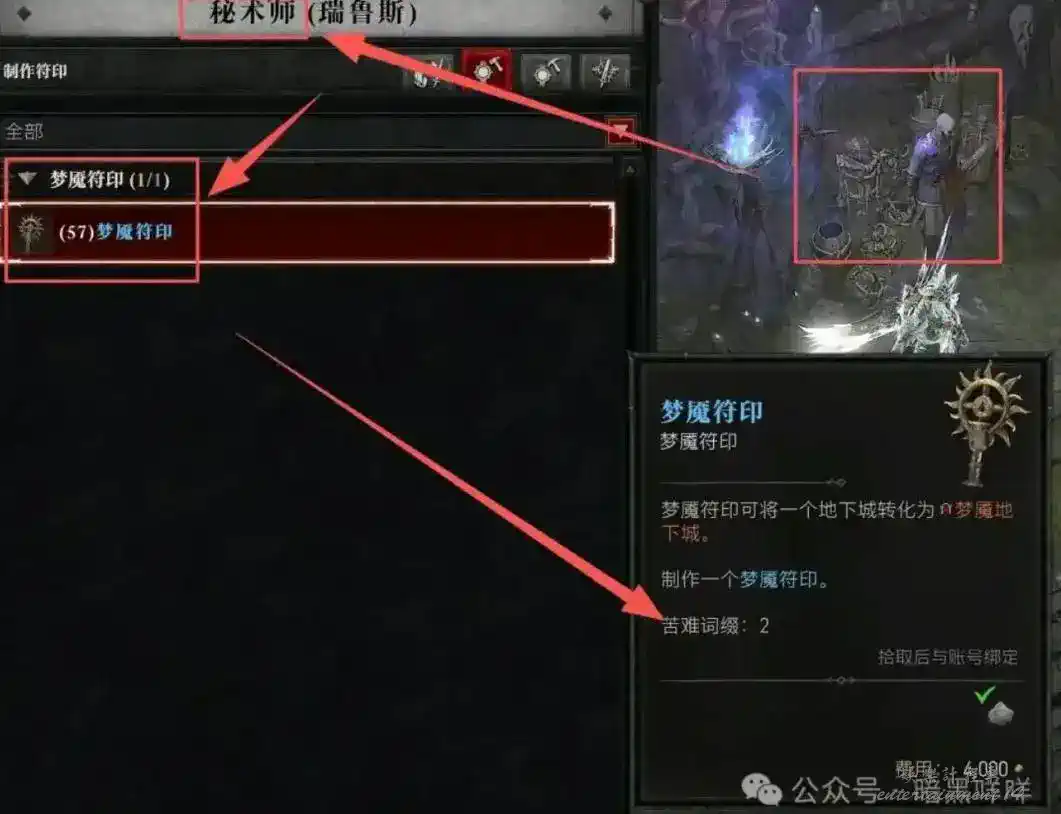 暗黑破壞神 4 (Diablo IV) 符印粉末獲取方法 21 12 月 2025-12-21 廣告 作者:暗黑咩咩醬子 來源:bilibili 精英怪掉落最多,推薦打地獄狂潮,紅色一大片區域就是地獄狂潮。 秘術師NPC第二欄,製作符印,隨機出各種詞綴地下城門票。 搗蛋鬼門票:只有一隻紫色地精,擊敗後掉落5個神話暗金+1個寶袋(含3個傳奇符文+1個紫電花)。 寶藏裂界:N個地精,掉落大量傳奇裝備、材料、金幣、符文。