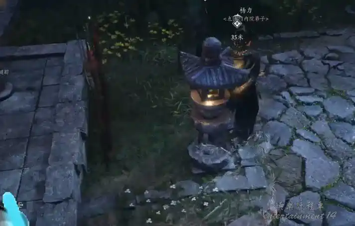 潛行進入後,將楊力的視線引到旁邊的屋內。