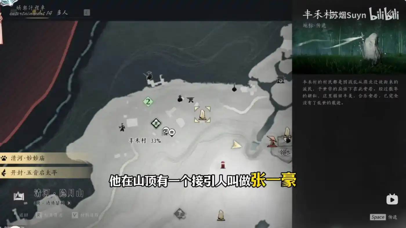 來到清河,傳送到豐禾村,然後目標位置在界碑的右下方。