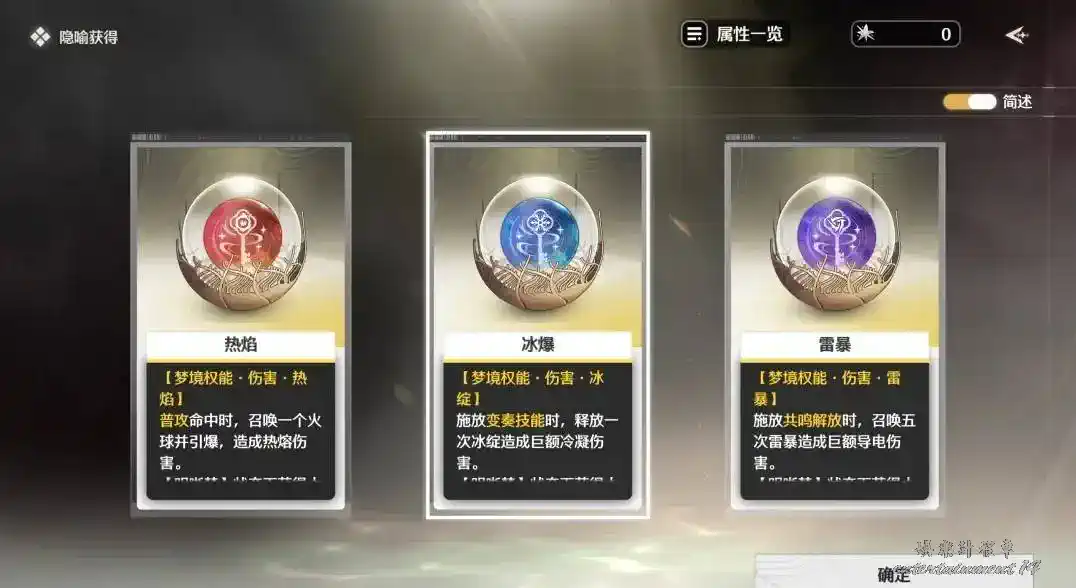 其中夢境權能-傷害分為火、風、雷、冰四種屬性,通過不同的戰鬥機制觸發,造成大量傷害