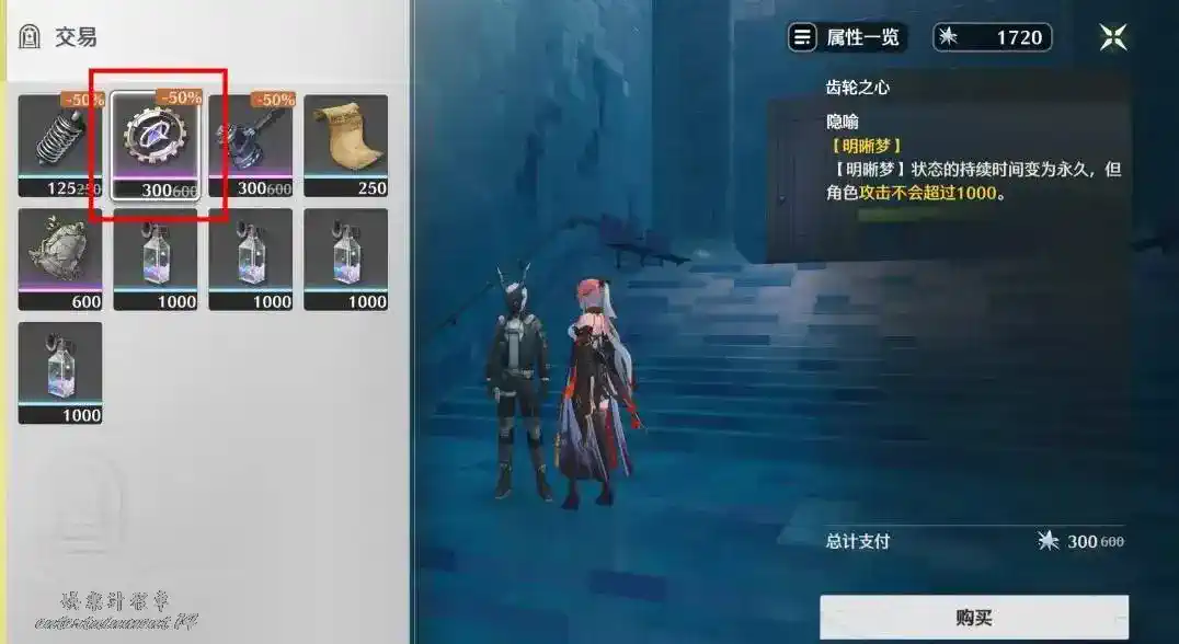 可以在使用該隱喻前,通過角色的技能機制先臨時增加攻擊力,然後翻倍固定。且在攻擊力翻倍固定後再使用“齒輪之心”,你會發現明晰夢變為常駐了,角色攻擊力也沒有降低