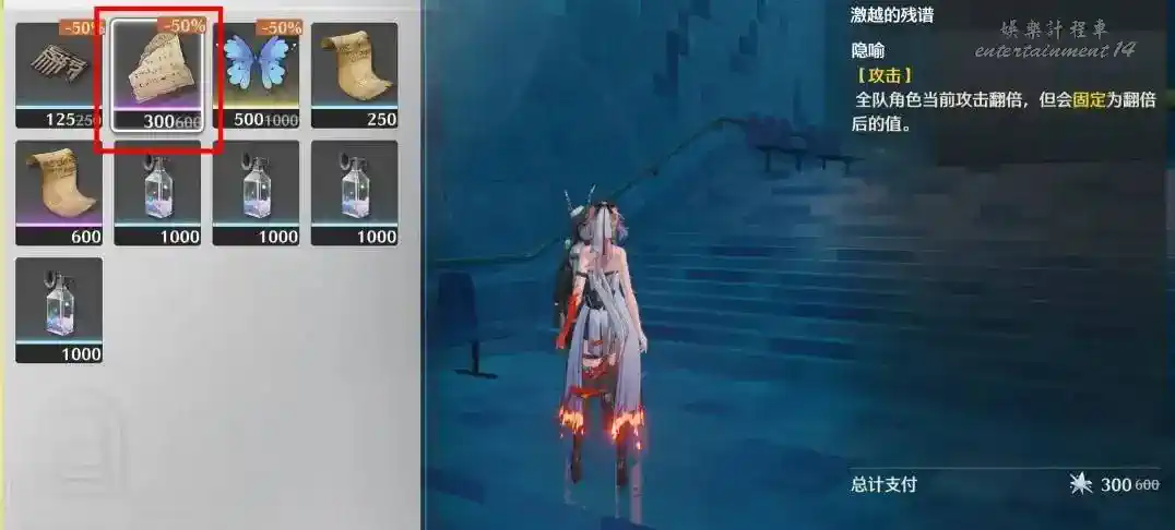 另一個特殊的隱喻是“激越的殘譜”,效果是讓角色當前攻擊力翻倍後固定