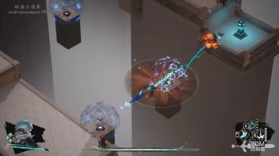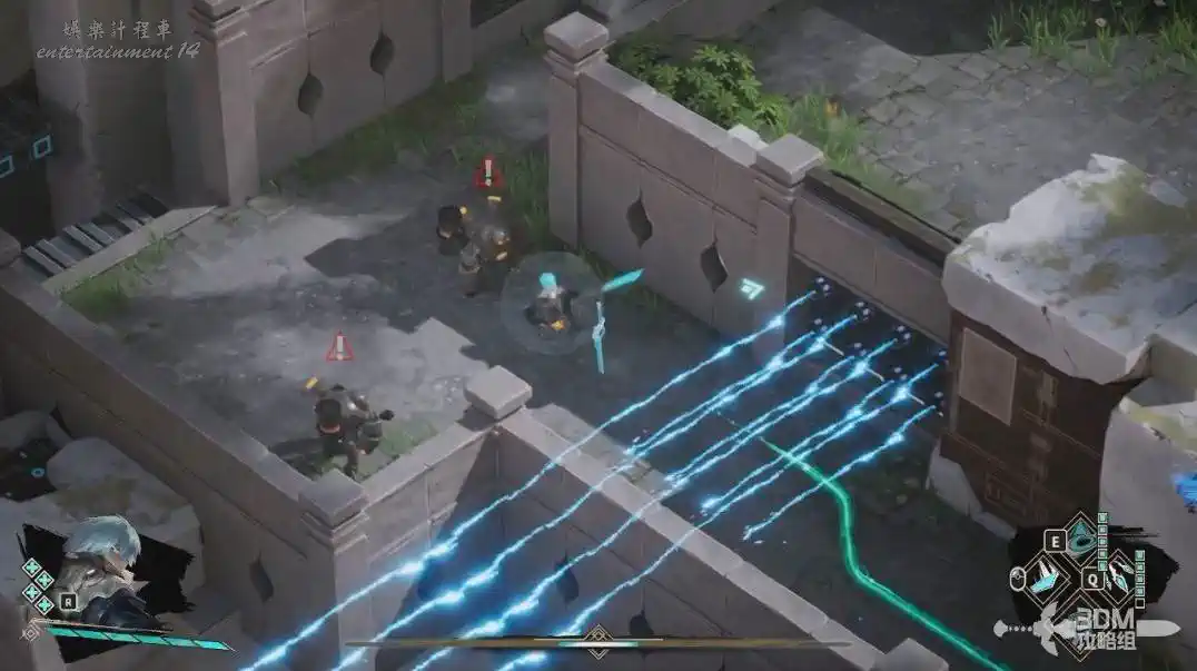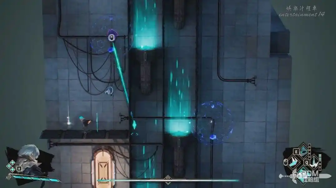 進左邊的藍門又有一群敵人,右邊還有鐳射陷阱,這些鐳射也會幫我們處理敵人。