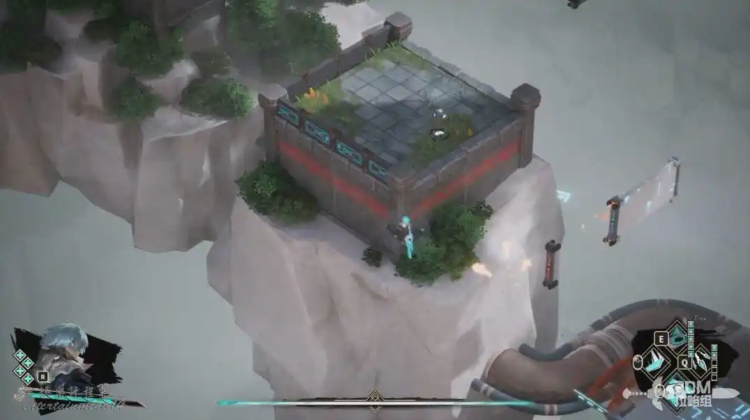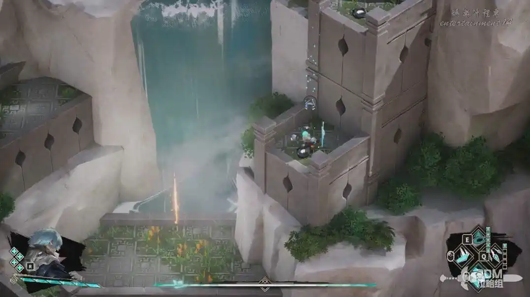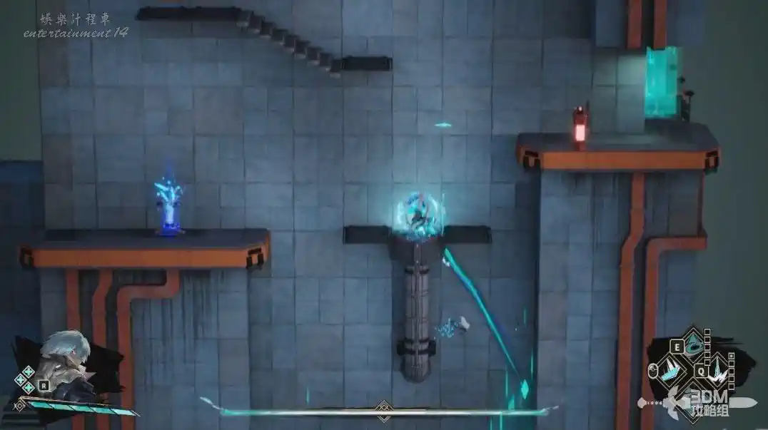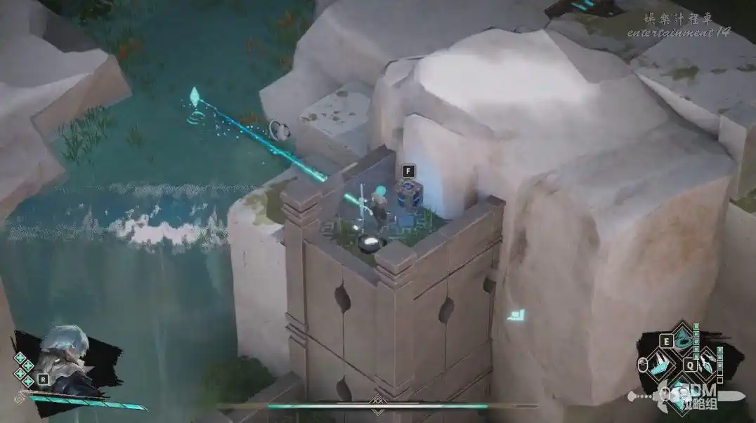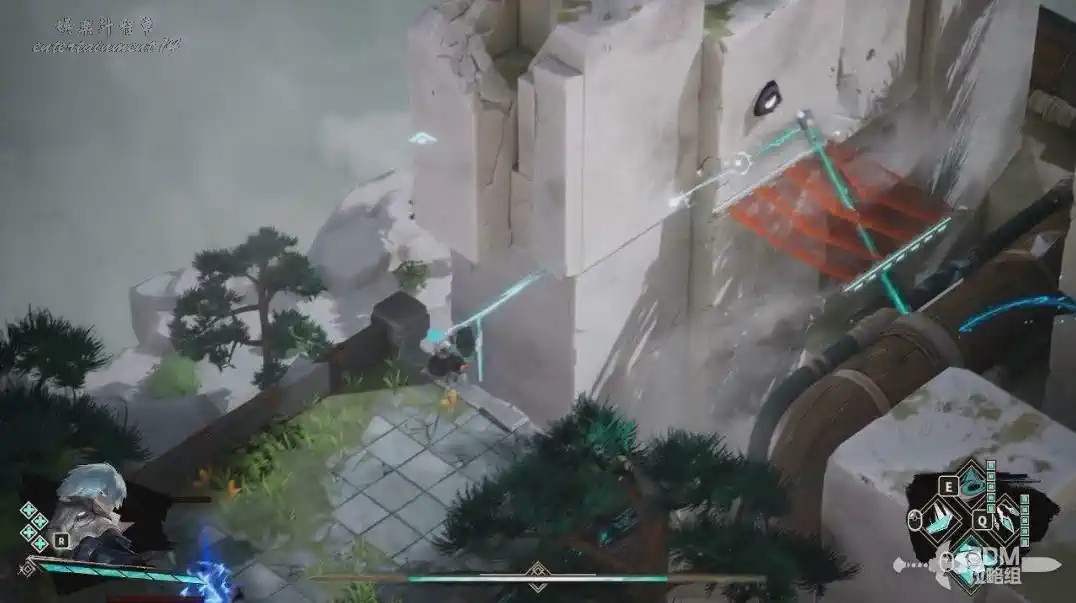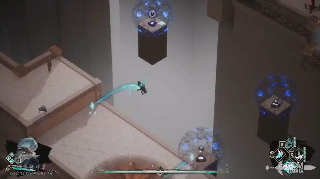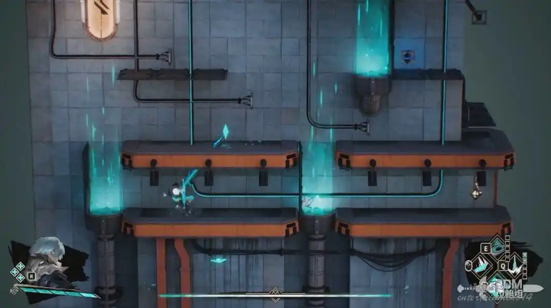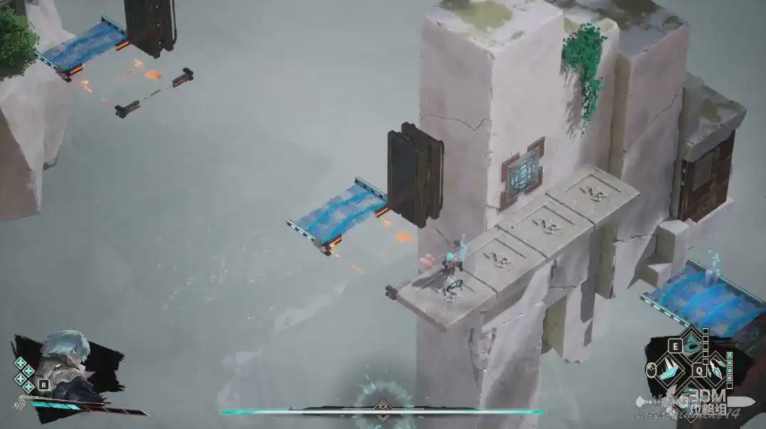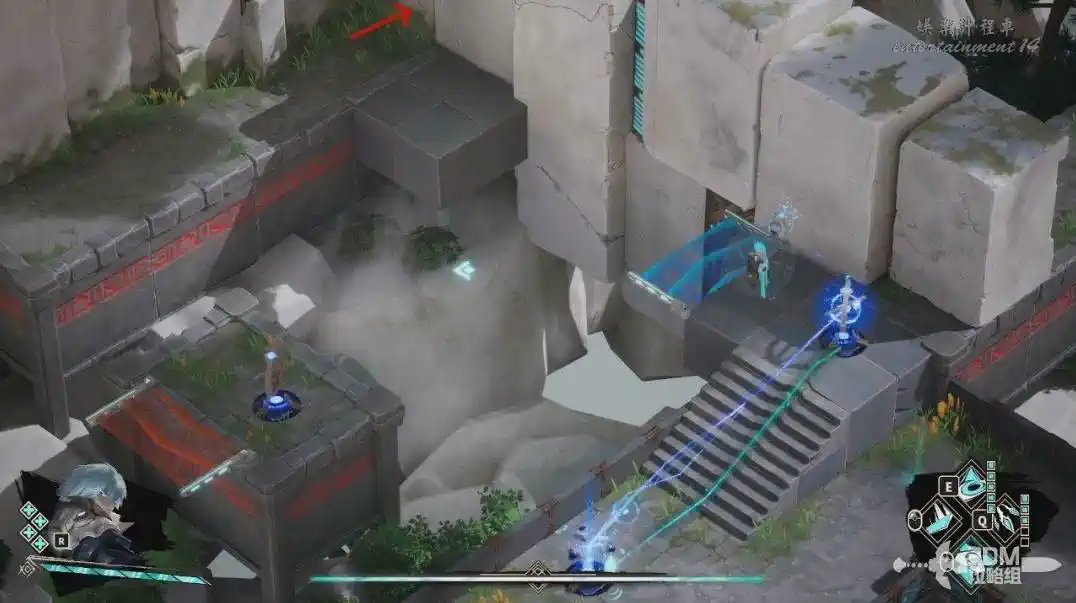 前面的戰鬥就不說了。後面這段解密第一個機關我們可以直接踩彈射板過來。