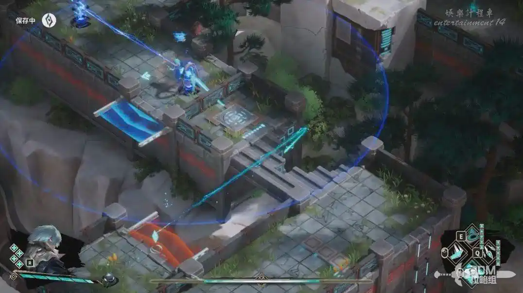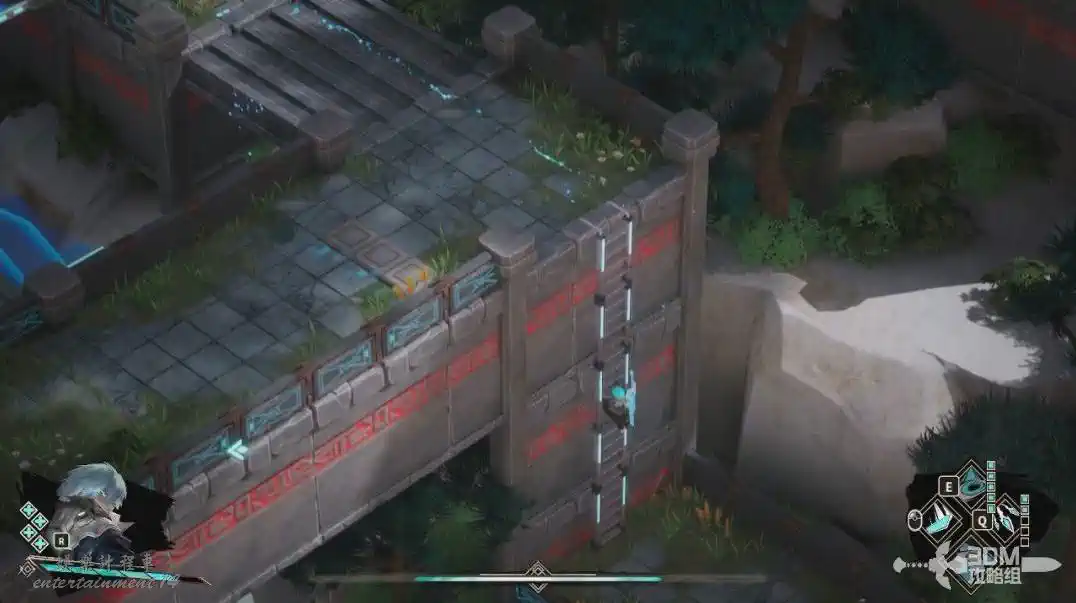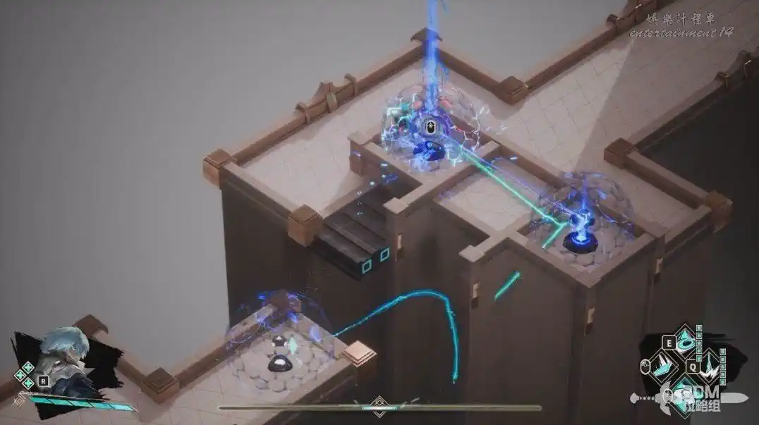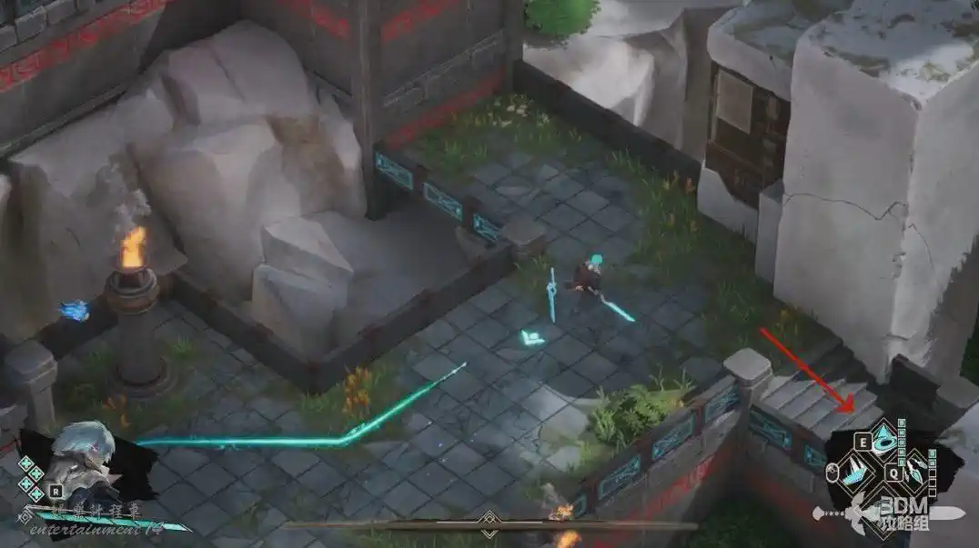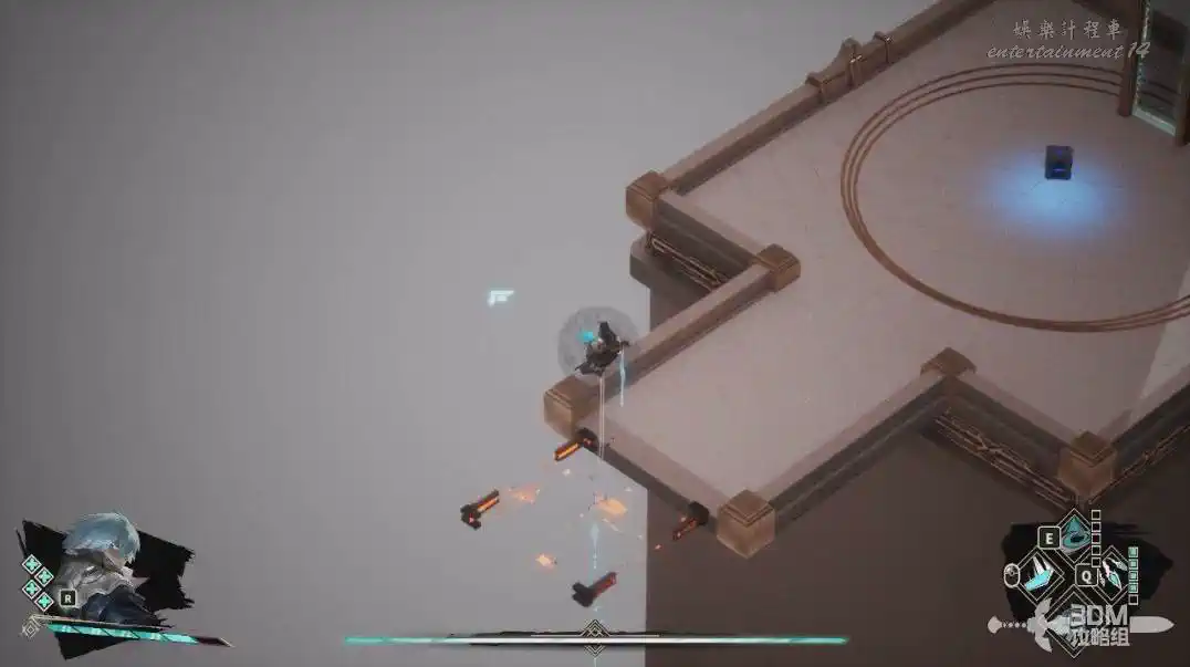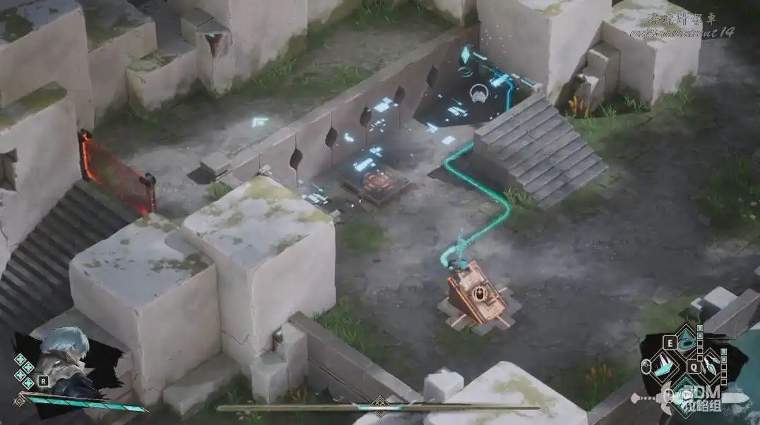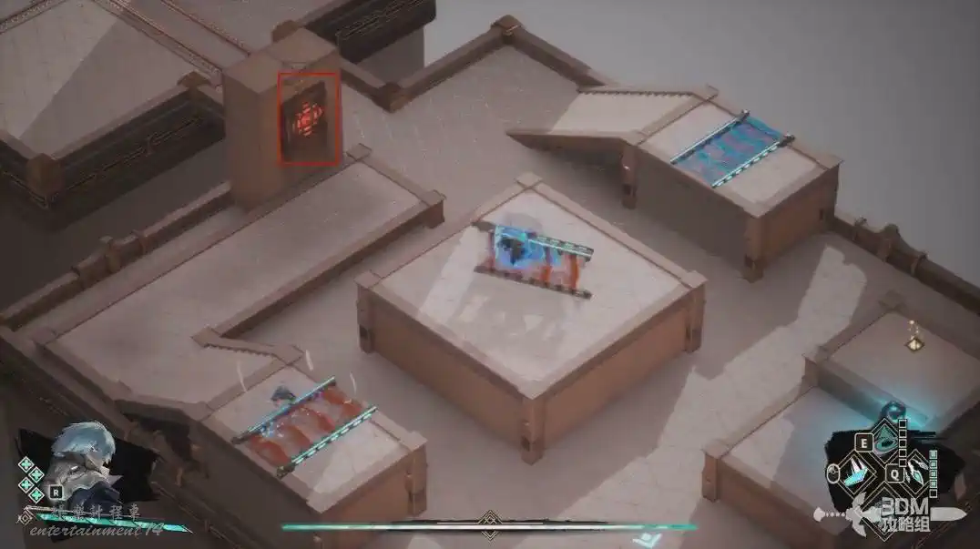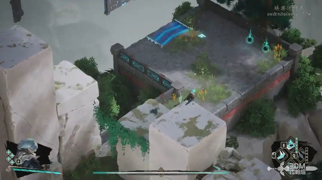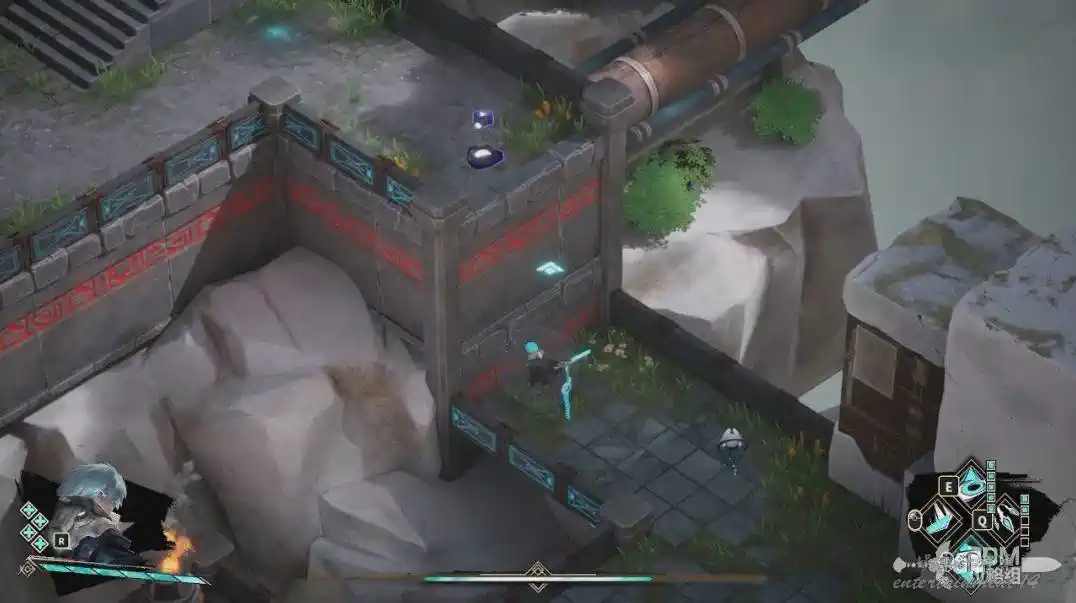 前面的戰鬥就不說了。後面這段解密第一個機關我們可以直接踩彈射板過來。
