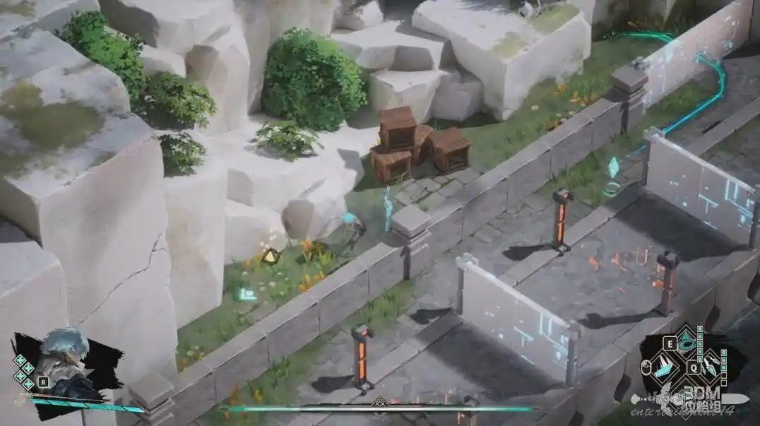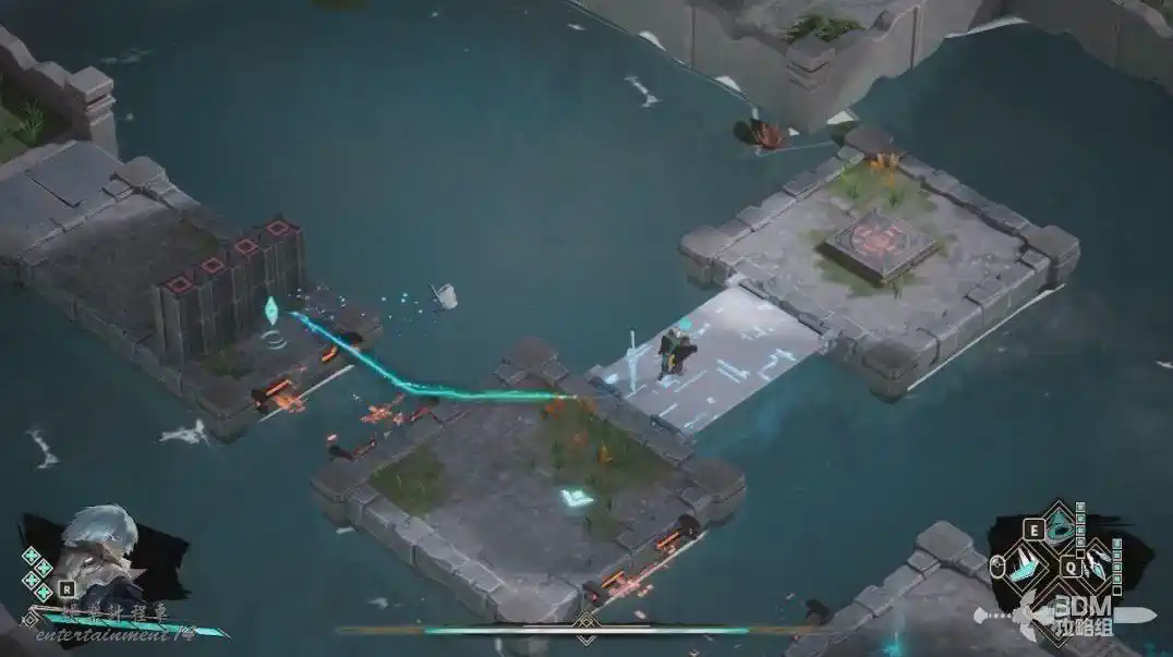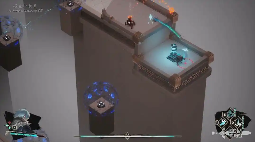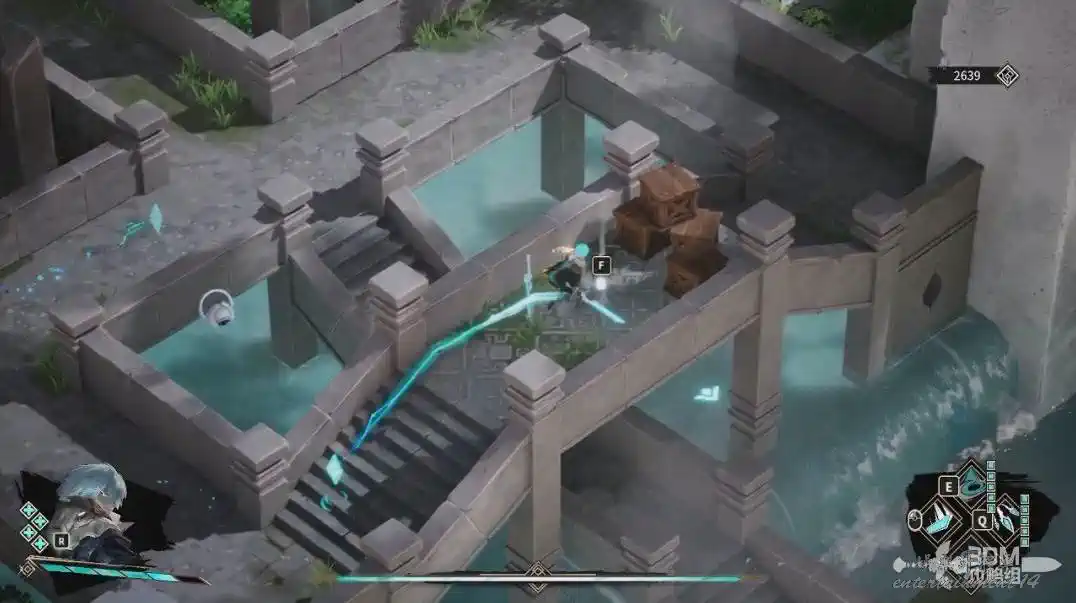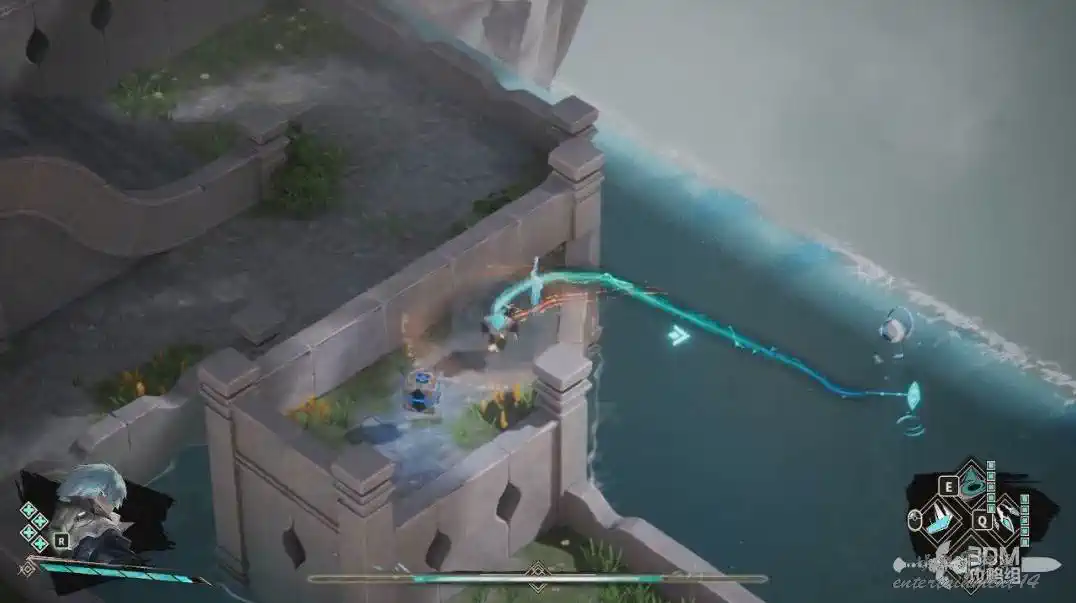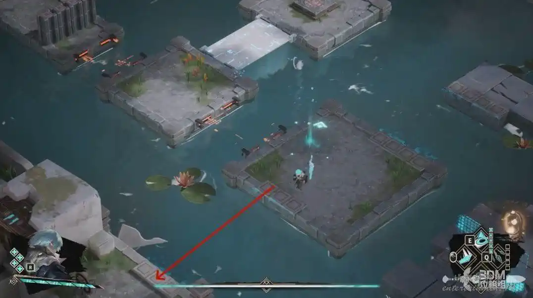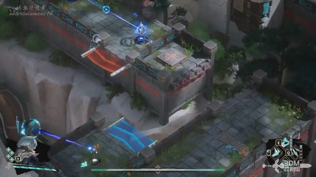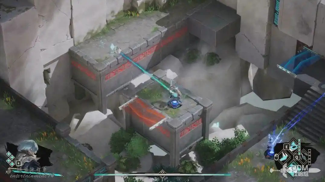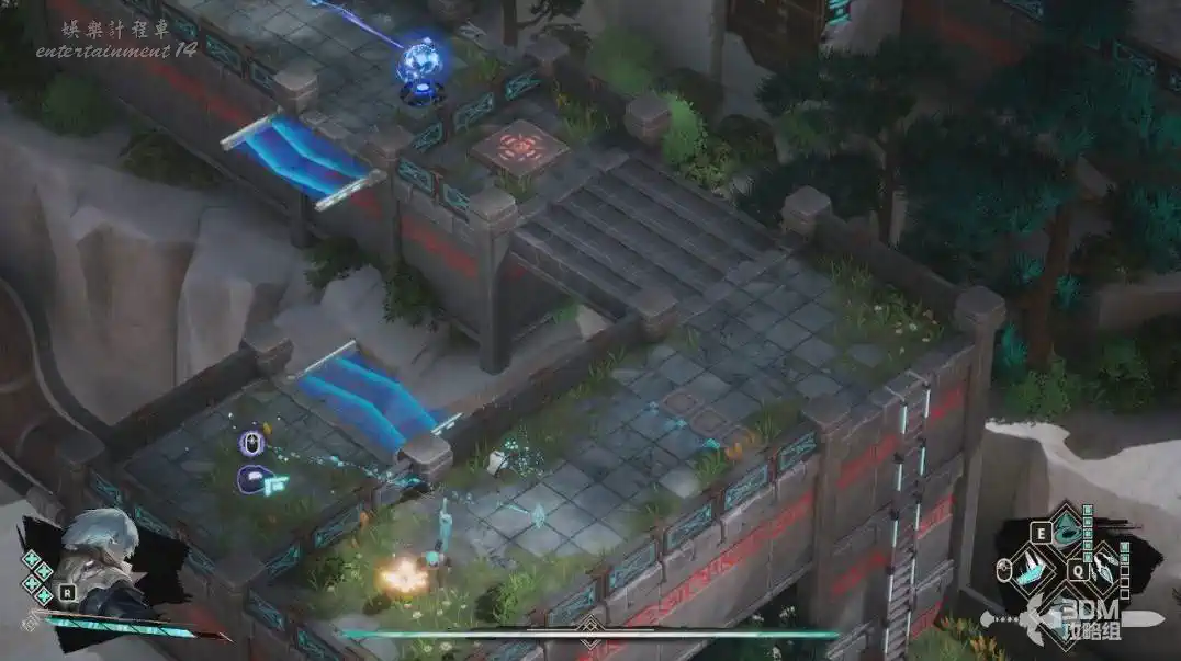 前面的戰鬥就不說了。後面這段解密第一個機關我們可以直接踩彈射板過來。