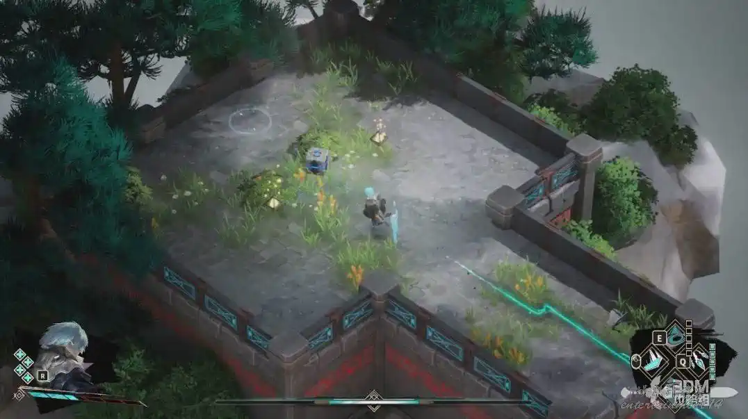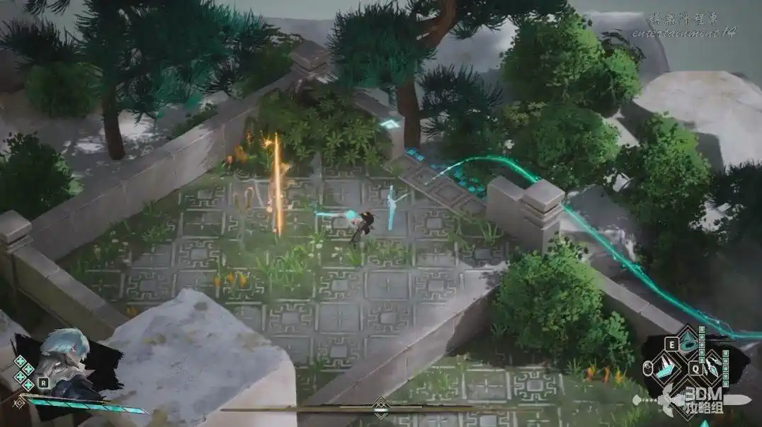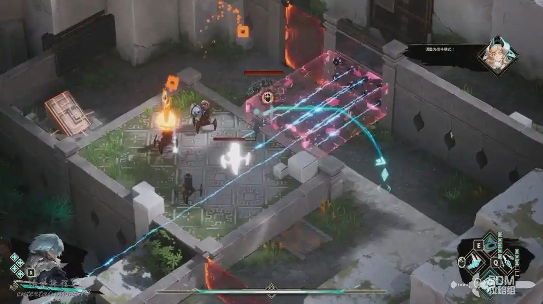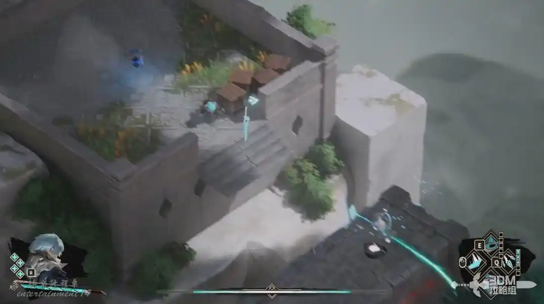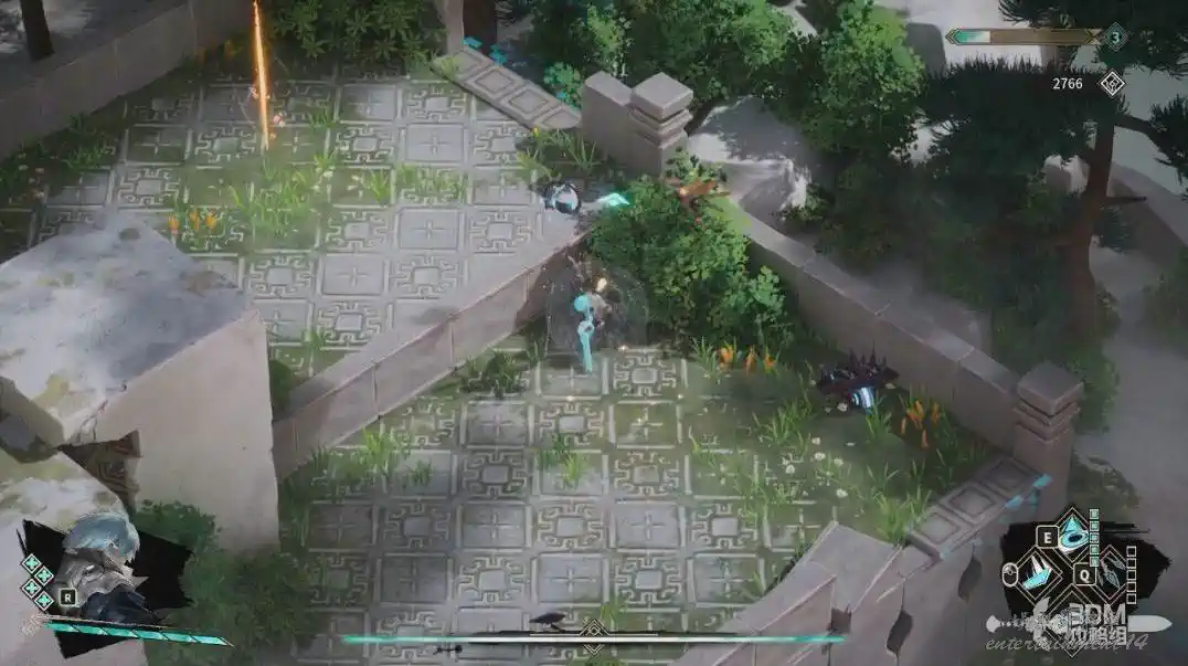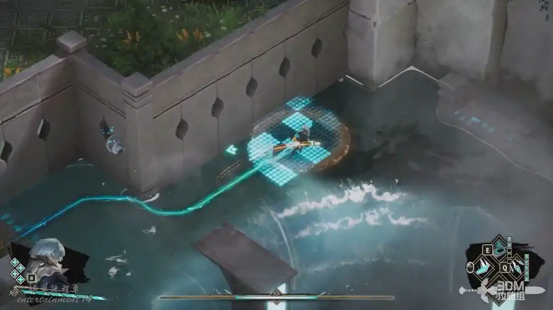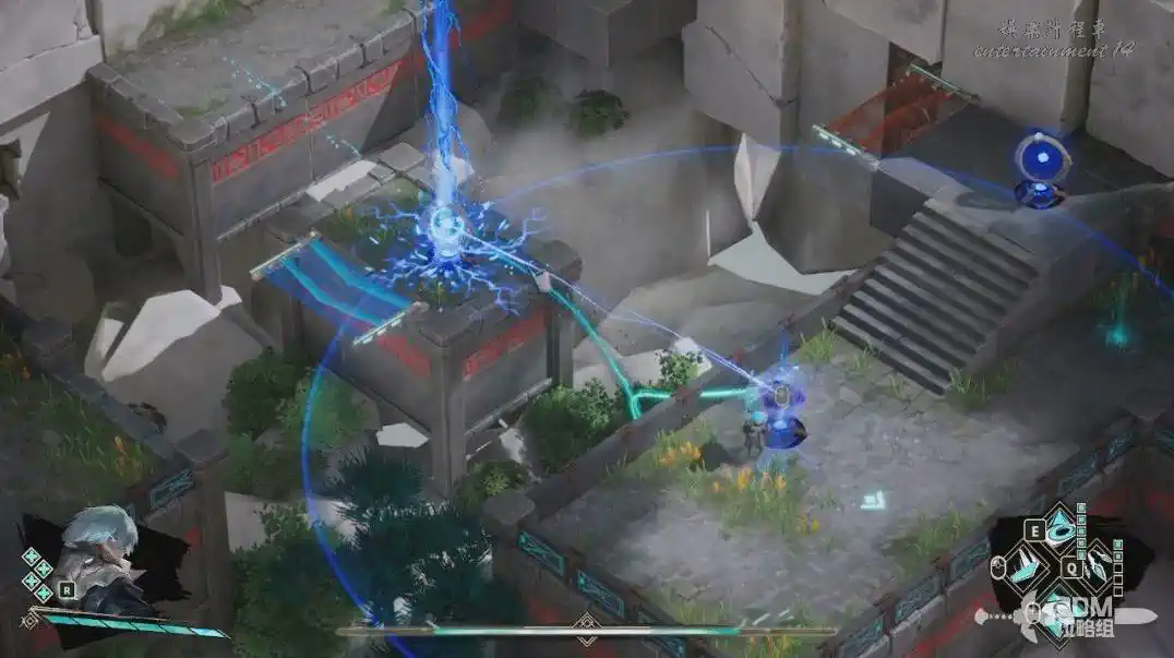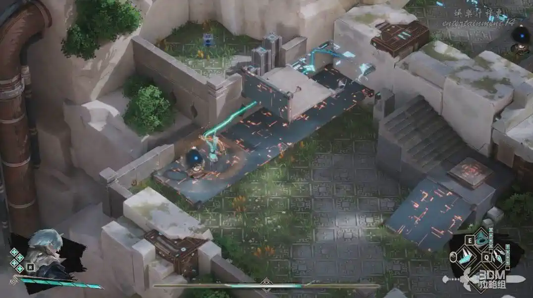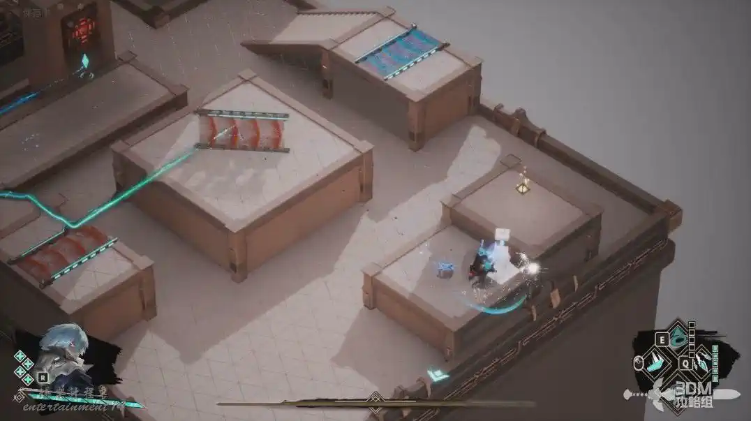 前面的戰鬥就不說了。後面這段解密第一個機關我們可以直接踩彈射板過來。