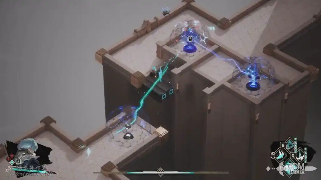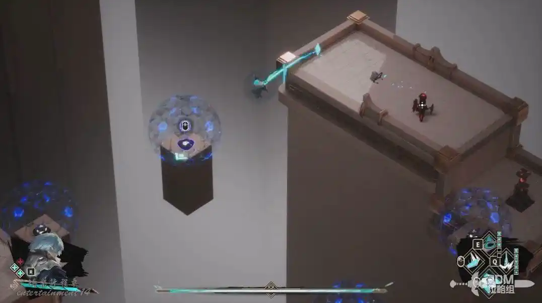 這邊的球發電還是需要用到對面的機器人,我們找個好位置瞬移一下。