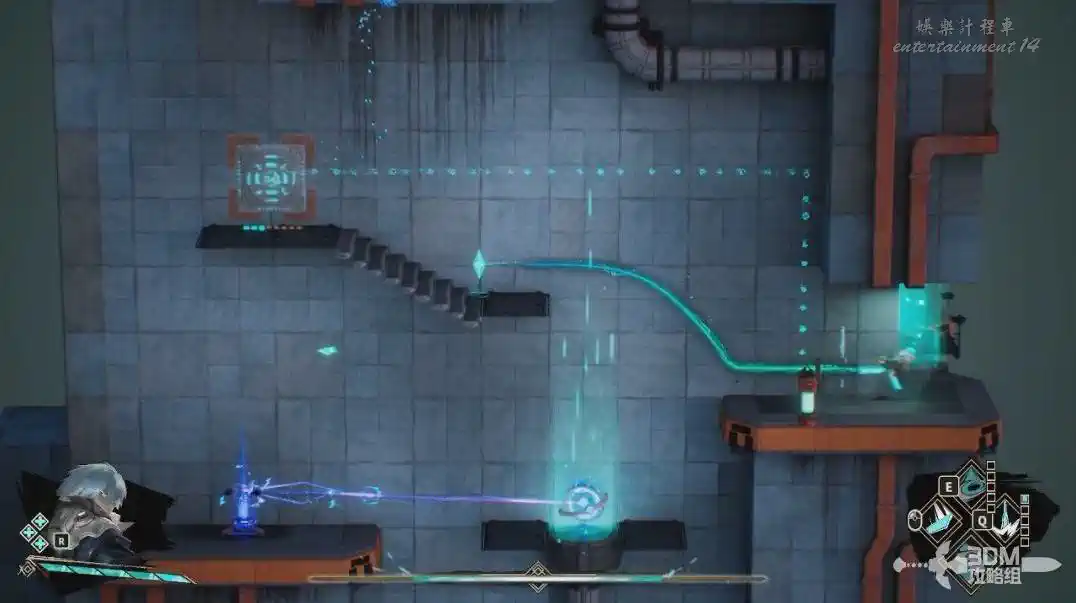 具體操作方法就是先在繼電器處開啟回溯,然後走下去,看到身上有藍色箭頭的時候開啟回溯,利用這個推力彈射過去。