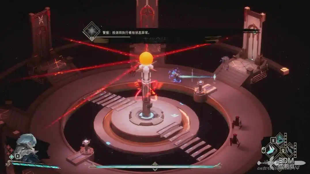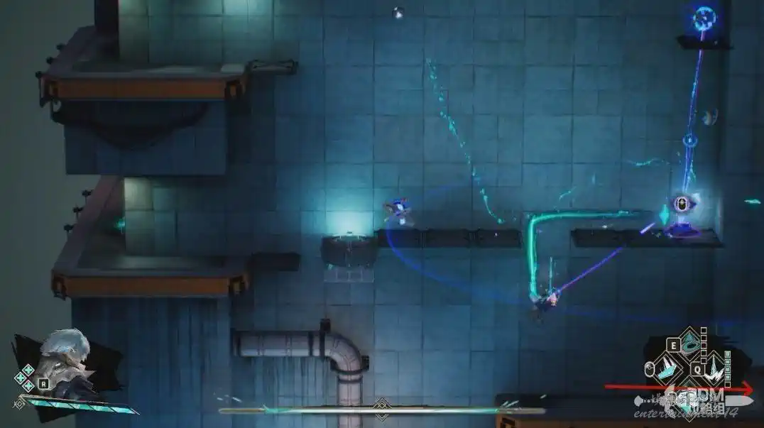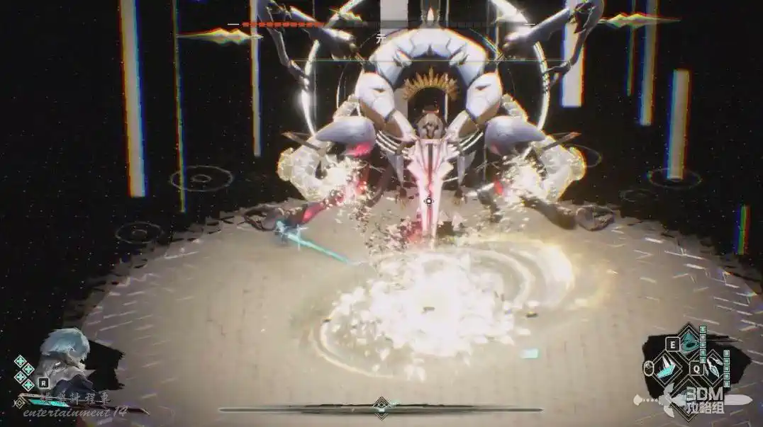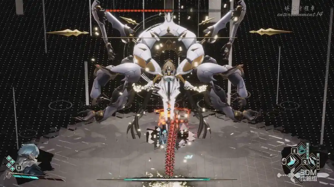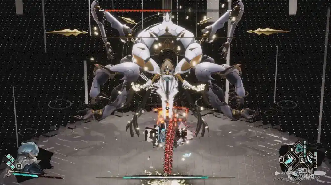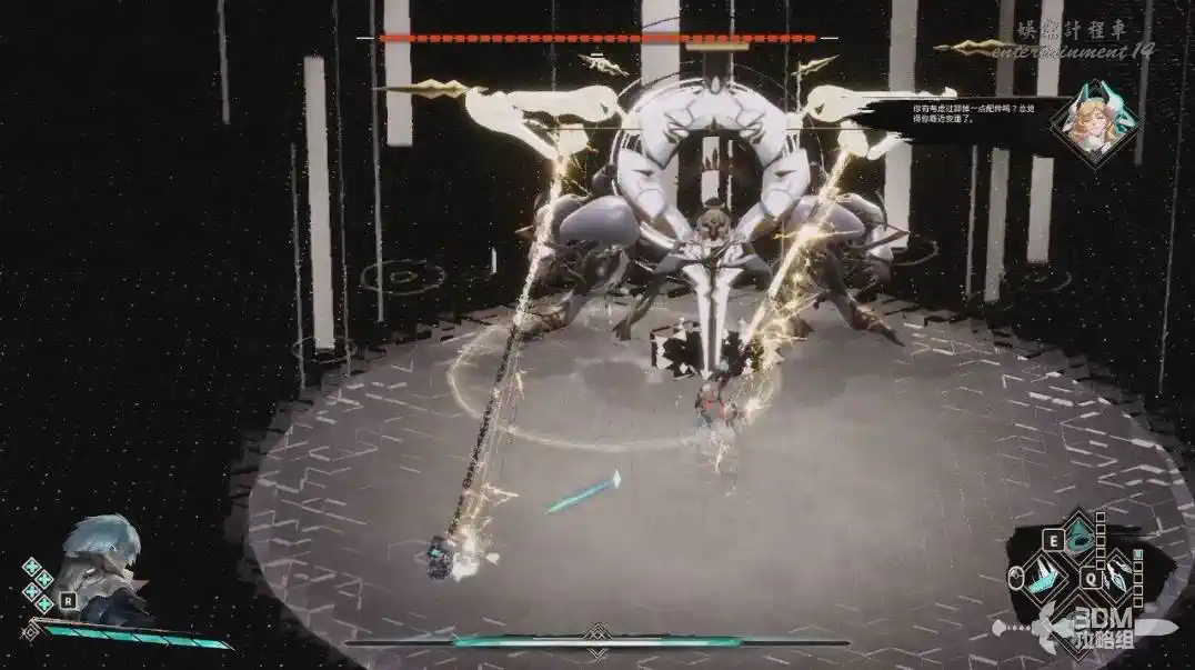 和“母親”對話。如果我們不接受格式化就會進入戰鬥,這一次戰鬥有兩個BOSS需要解決。第一個BOSS就是我們開局教學關的BOSS,需要注意的也就只有他在空中釋放的刀氣攻擊了。
