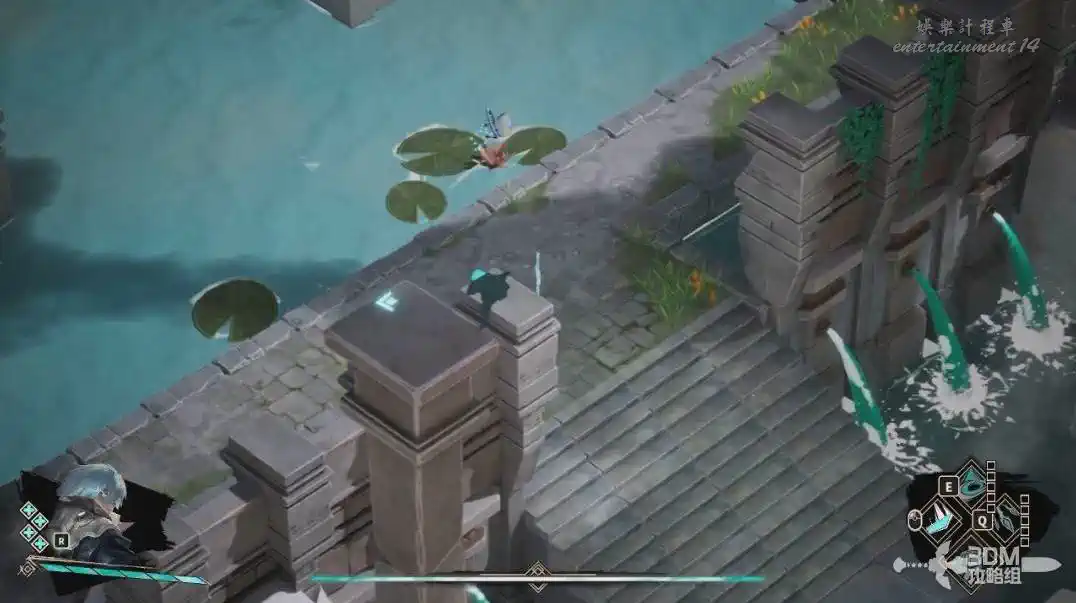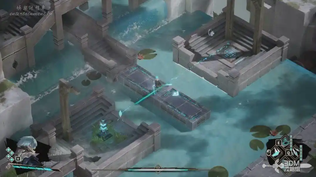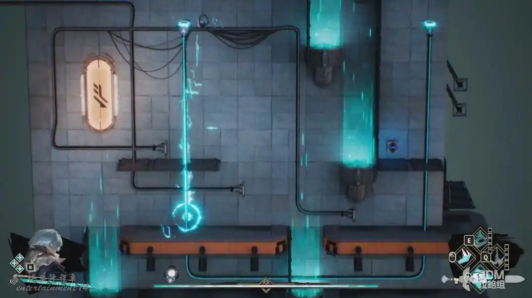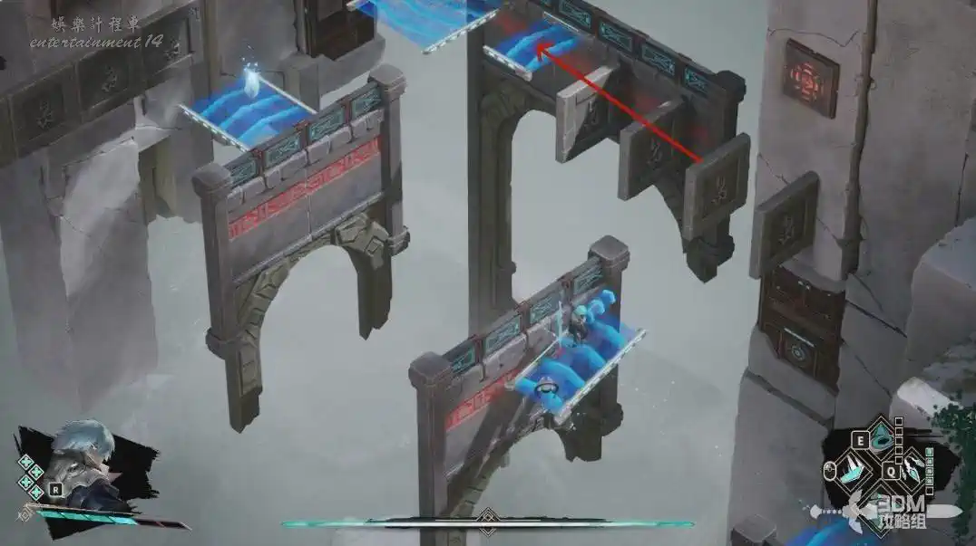 我們開回溯到這個平臺把這個機關點亮,右邊的柱子會下去。