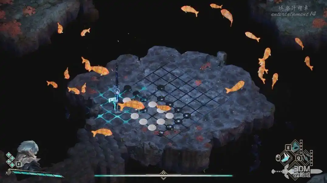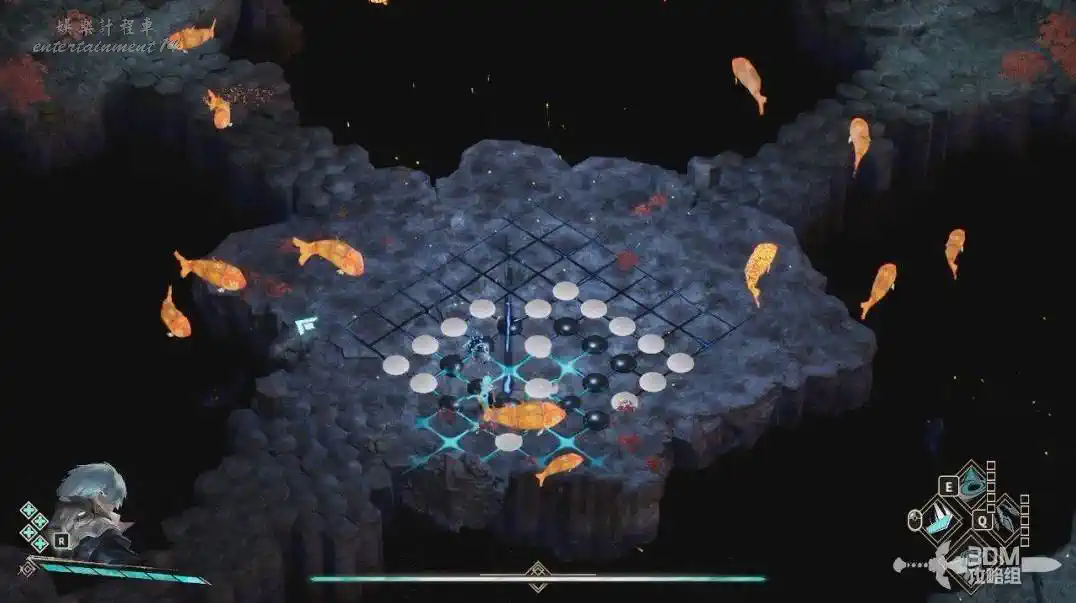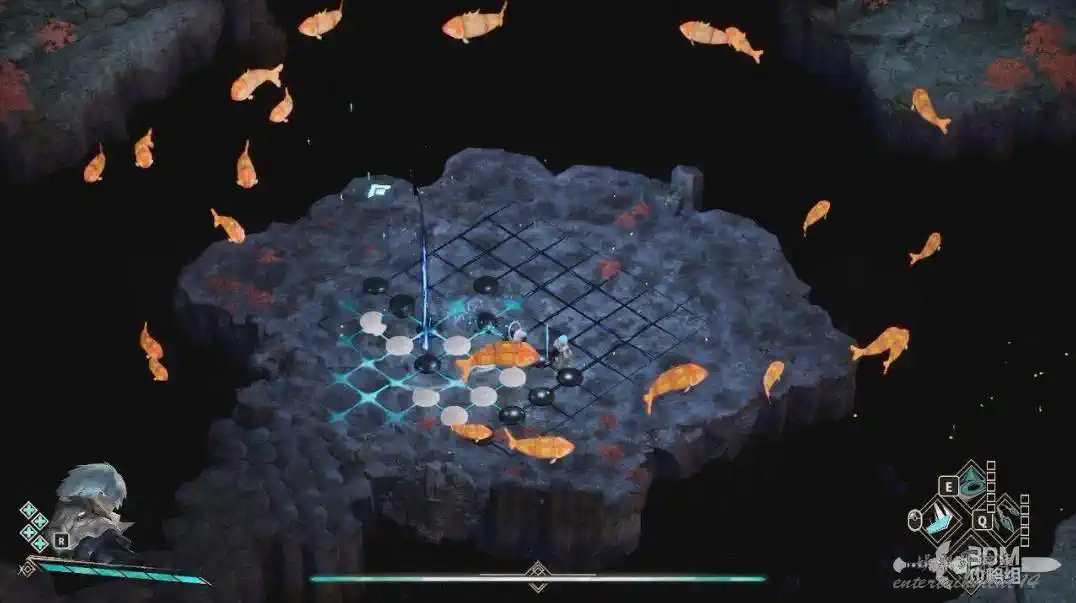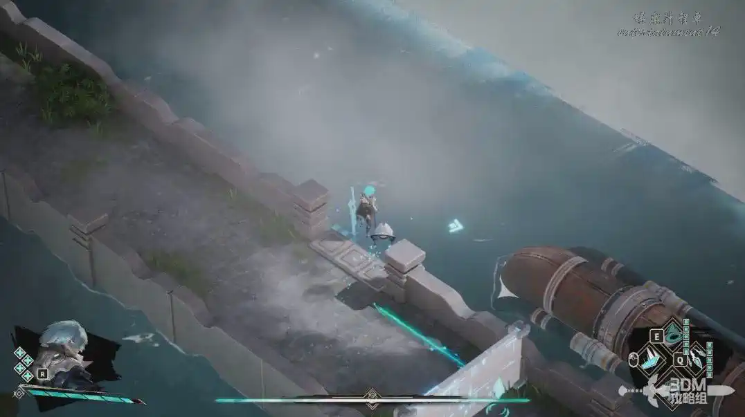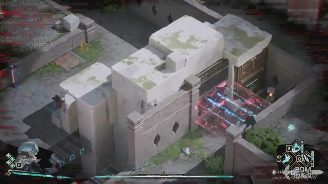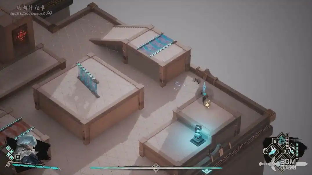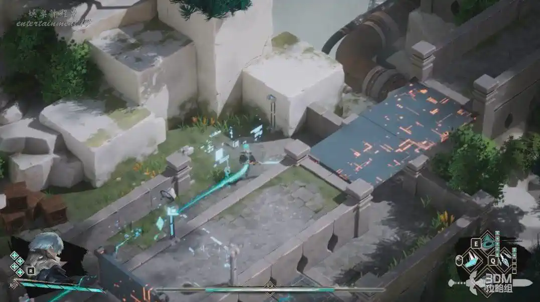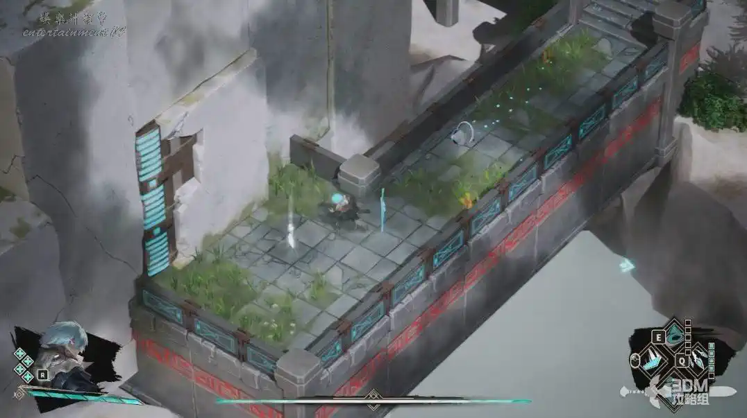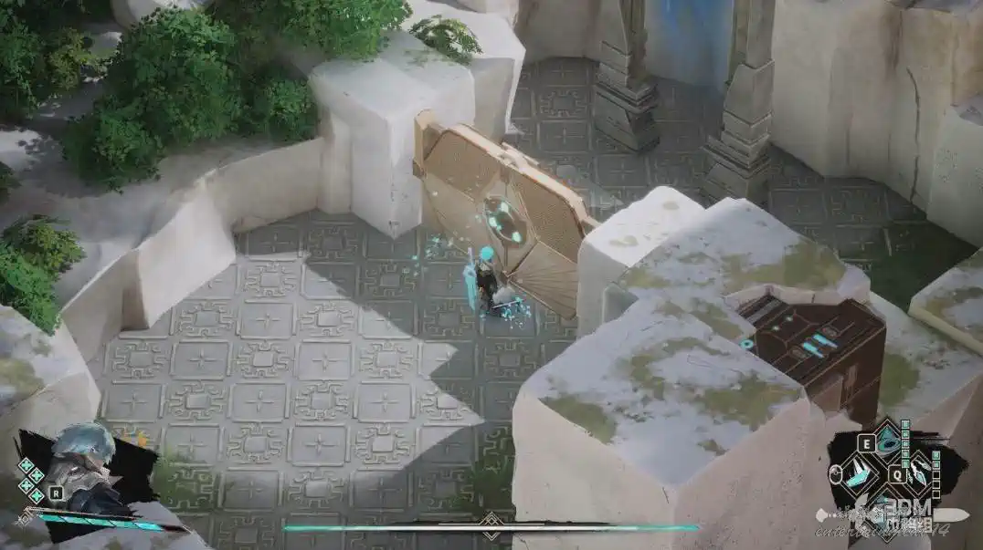 左邊有一個小解密。我們先踩一下右邊的機關,讓白色的平臺過來,我們站在上面,等它貼牆後我們開回溯下去點亮下方的機關,然後回溯就能進門了。這次的魔方還是反覆運算晶片。