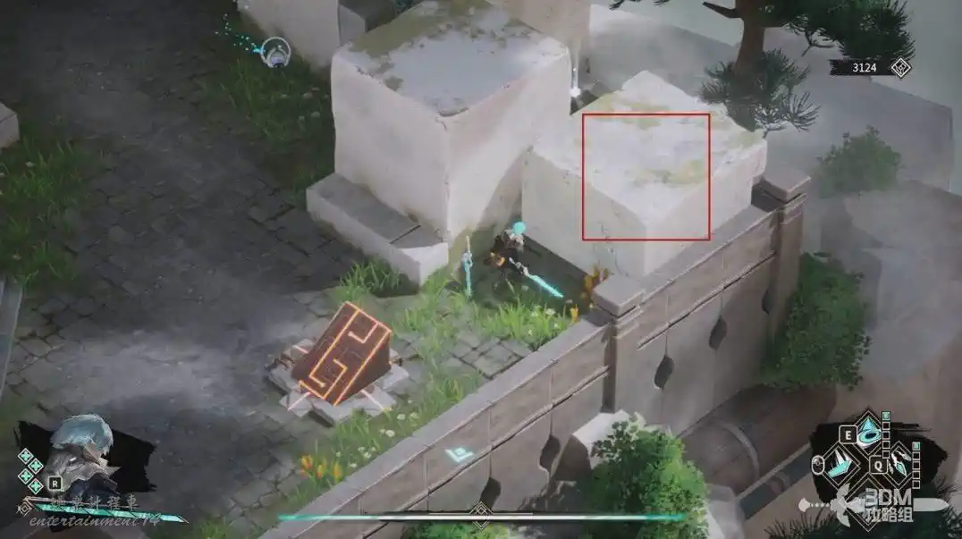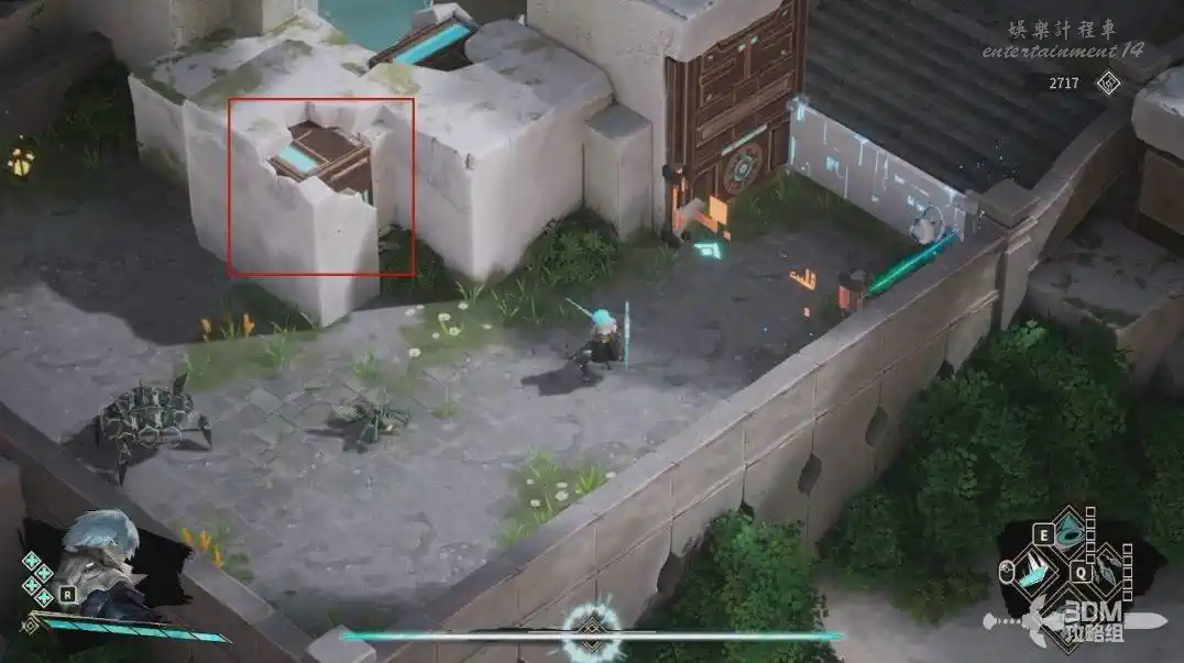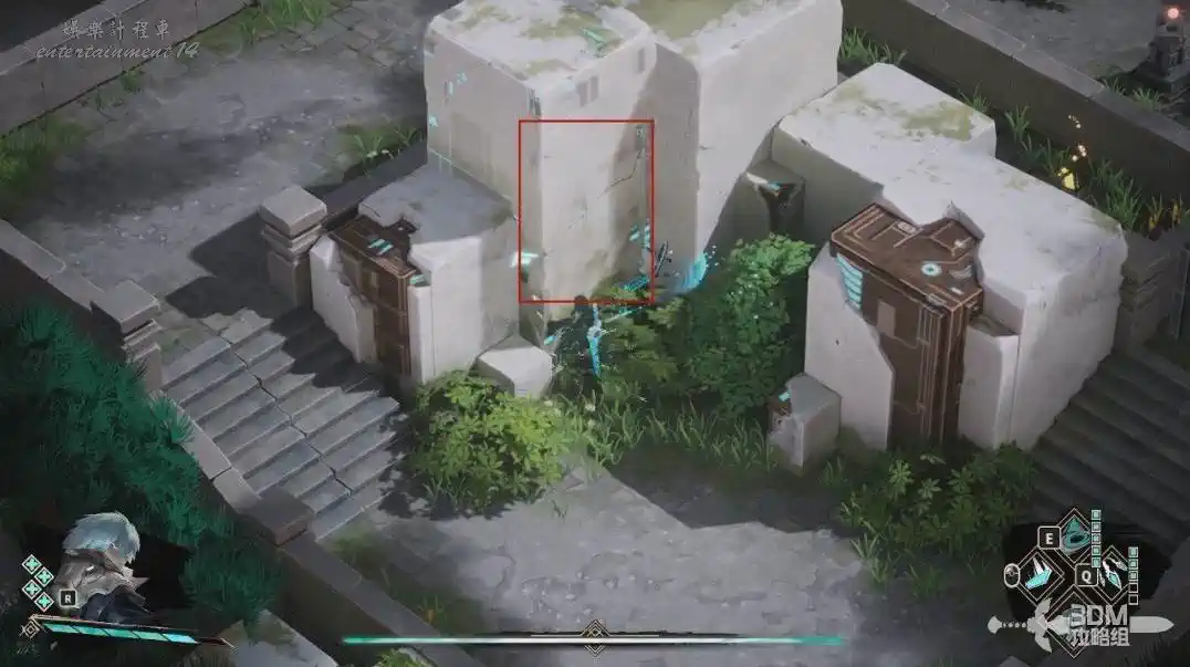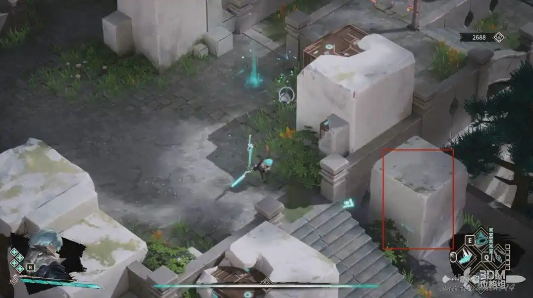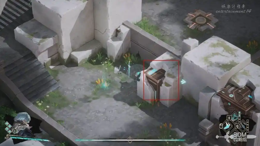 這邊東西拿到後我們往上走一點點,這邊的石柱打掉進去拿一下裡面的魔方,這個魔方是反覆運算晶片。