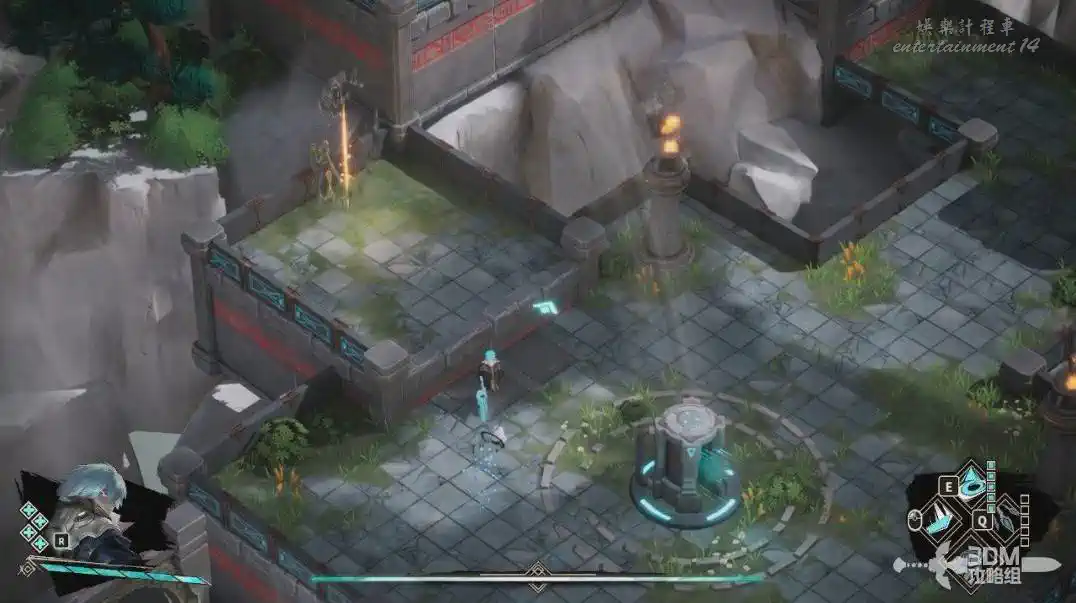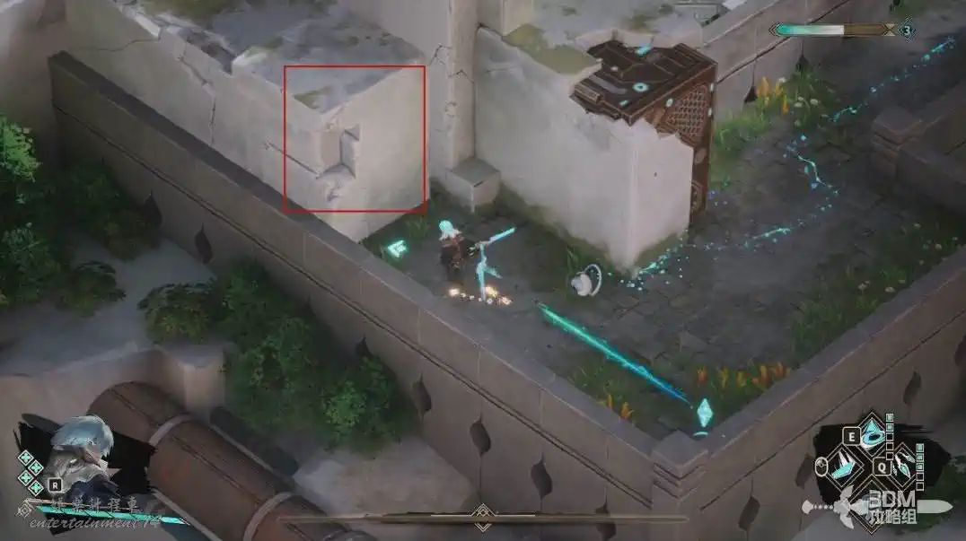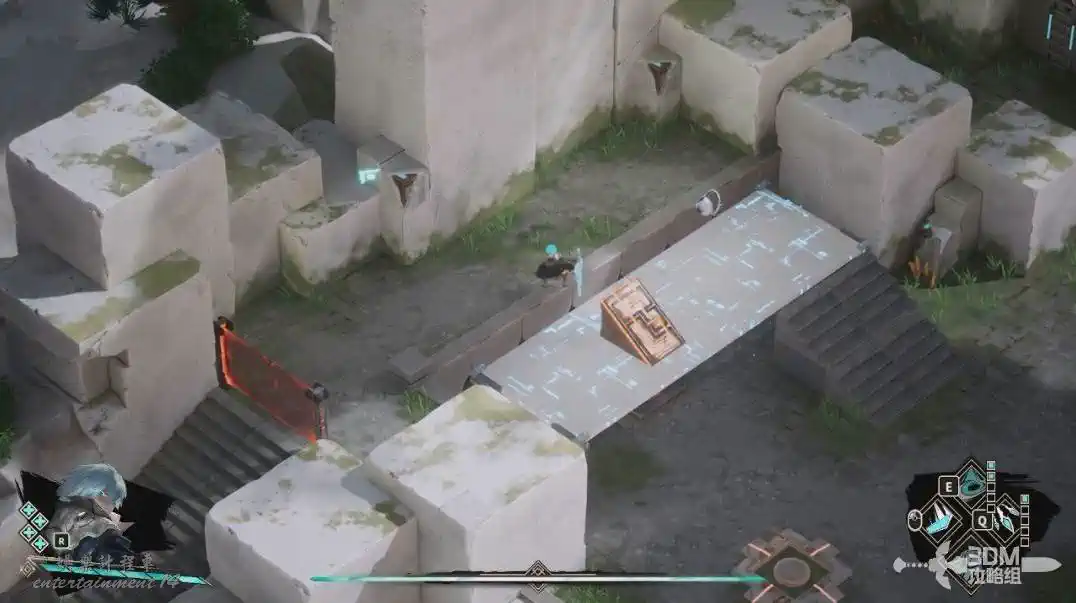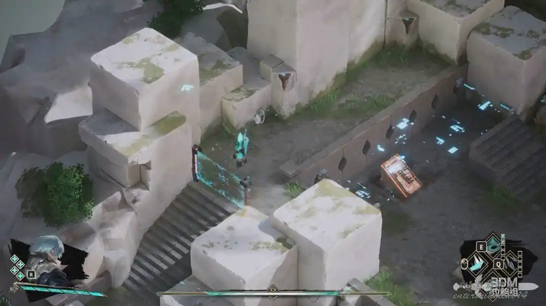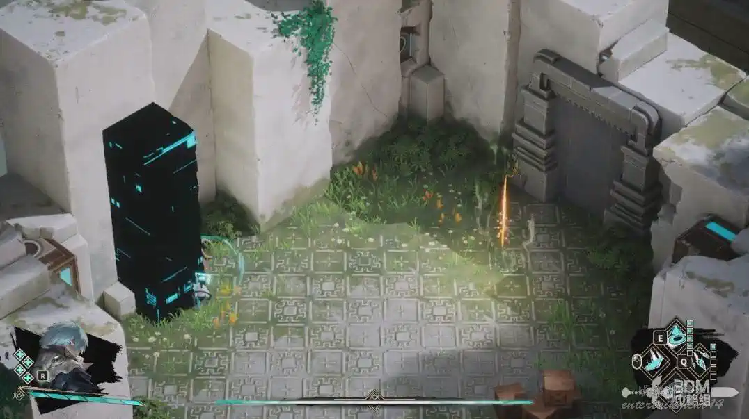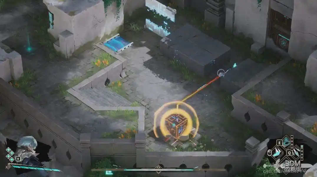 這邊東西拿到後我們往上走一點點,這邊的石柱打掉進去拿一下裡面的魔方,這個魔方是反覆運算晶片。