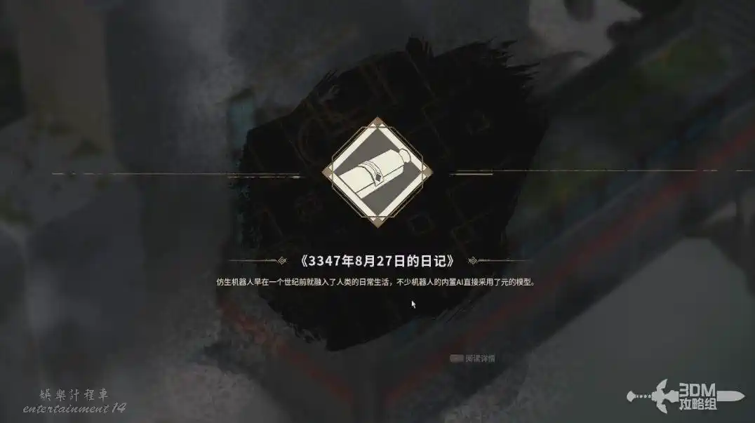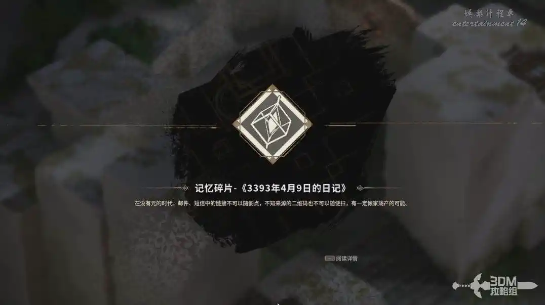 接著走來到頂上,門口就有一個“記憶碎片-《3393年4月9日的日記》”。