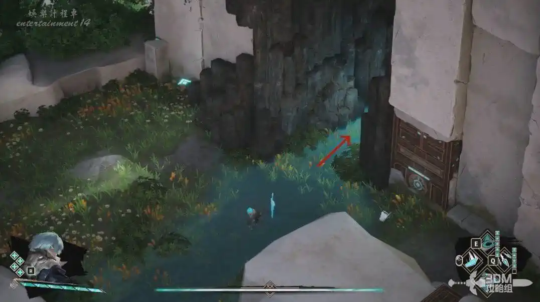我們先往上走,打一下這邊這個石頭,這裡有一條小路。