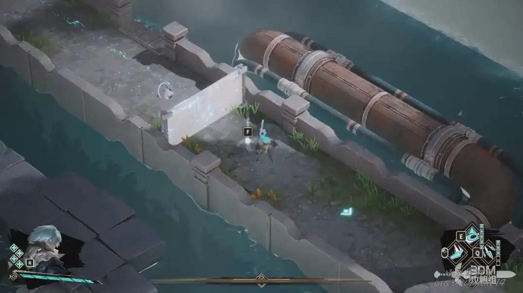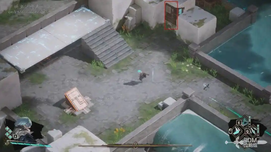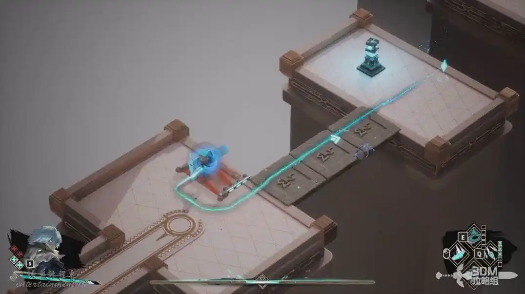 拿到後回去,往下走。這個地方的小解密需要我們先把這個踏板運到上面。