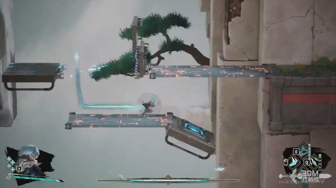 然後這樣瞬移,靠回溯在中途下車踩在伸縮平臺上。