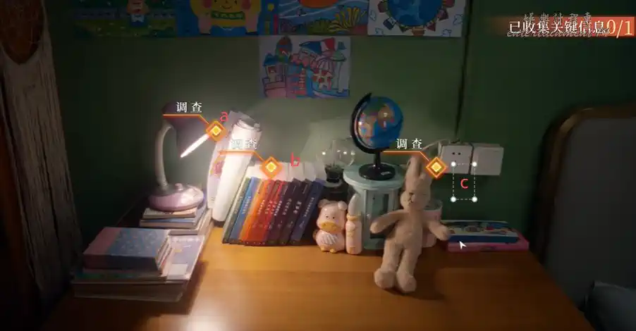 再次穿越醒來,先調查周圍的環境,共三處調查點,關鍵資訊有兩處