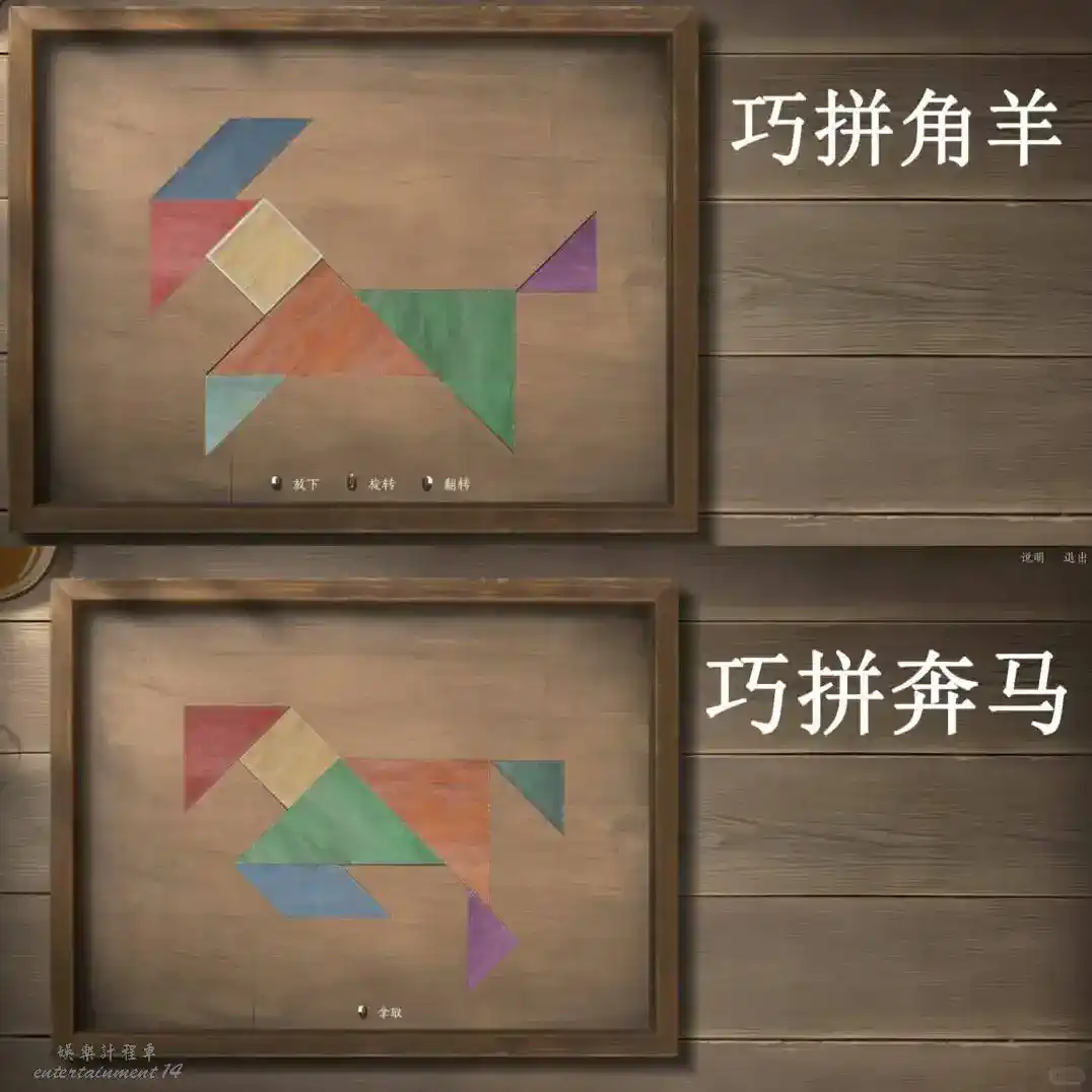 玩法就是七巧板玩法,只有四板和七板之分,按圖拼接即可完成。