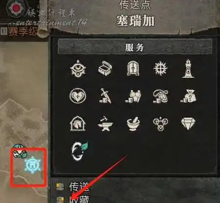 綁定成功後,塞瑞加會自動加入傳送點收藏,同時右下角城鎮傳送門圖示處。