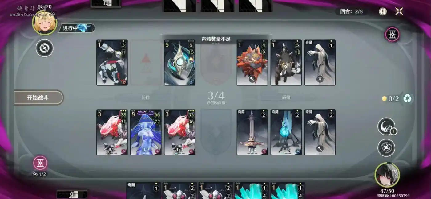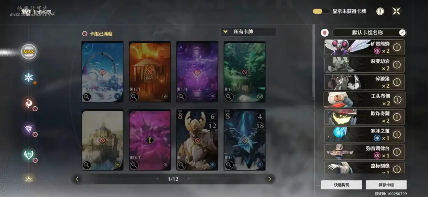 第二回合:使用領域技能、路標刻像技能,繼續找牌並使用奇藏:轉運機拉狗子上場,兩隻都在場上後就可以放奇藏:彌音調律台和奇藏:寒冰之繭上場,然後就可以迴圈放釉變幼岩到場上不斷刷數值刷錢啦~如果你的聲骸場地變成了下圖這樣的形狀,那麼恭喜你,這把你已經贏啦~
