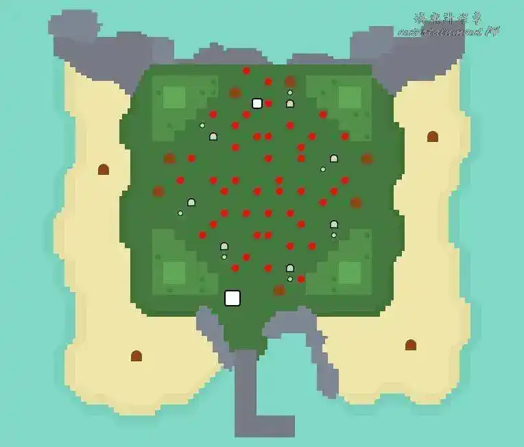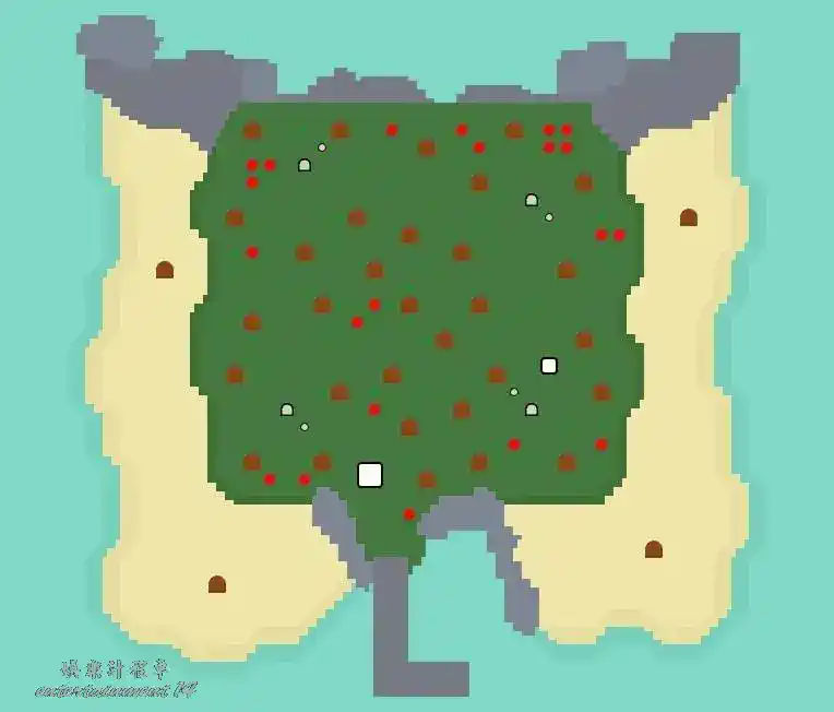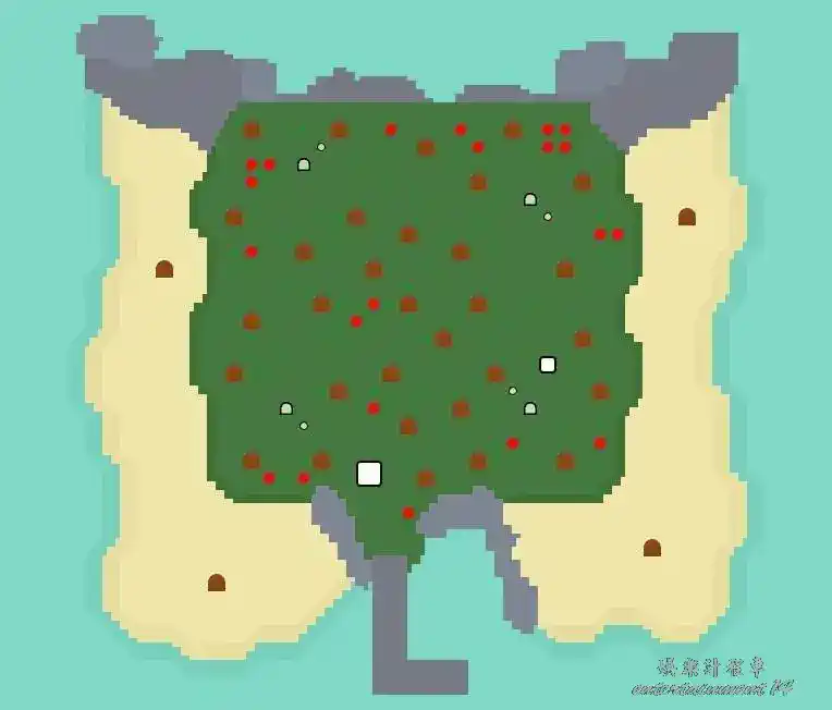 地形:三層島,島上四個角落都有高地,沒有河流或池塘