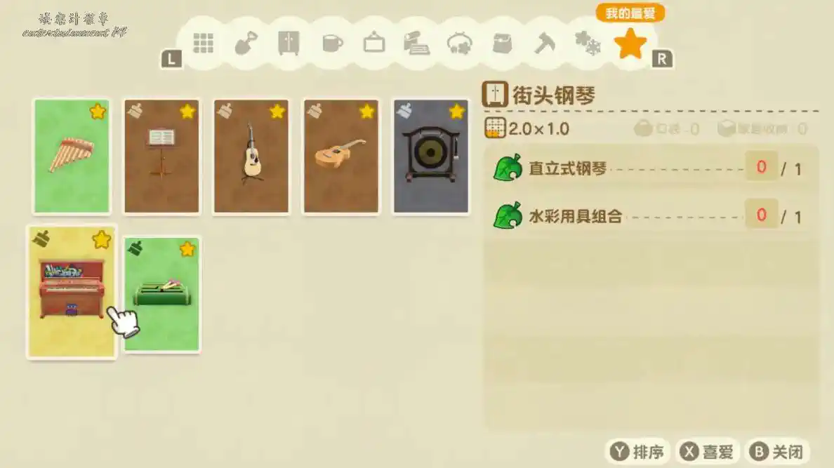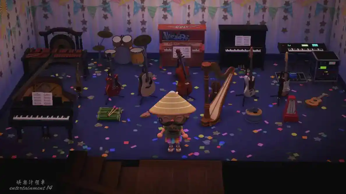 鈴鼓、直立式鋼琴、小提琴、電吉他es1、電吉他es2、豎琴、電貝斯、三腳架鋼琴、爵士鼓組合、大提琴、小提琴、音效機櫃、效果器組合、中音薩克斯風、樂譜架、馬林巴木琴、節拍器、DJ台、音響合成器