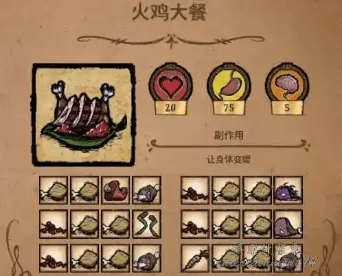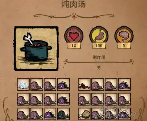 Don’t Starve 優質食物推薦 7 1 月 2026-01-07 廣告 作者:幫助魚人浮浪噗 來源:bilibili 肉+蛋+蔬菜+填充 緩慢回血+下洞穴續航神器 超級回飽食度+回血 冬天保暖升溫+回san 魚+樹枝+兩小肉 永久食物