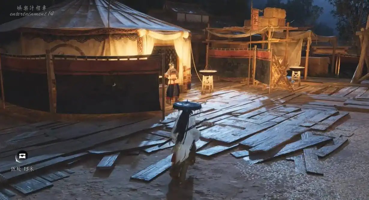 拿到輿圖後,繞到帳篷後方,找到一條密道入口,門口站著一位NPC。