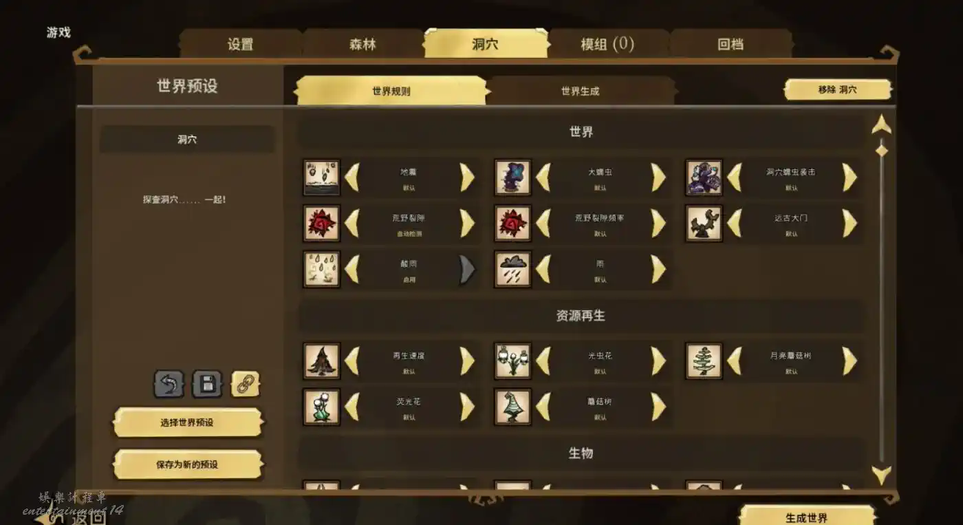 Don’t Starve 洞穴開啟及進入方法 8 1 月 2026-01-08 廣告 作者:在霧之都的GLoRy 來源:bilibili 如何開啟洞穴與認識洞穴 洞穴系統是饑荒裡主線不可缺少的一部分 ,也有很多建家黨喜歡在洞穴中找個地方建家,它的開啟方式也很簡單,在創建伺服器時會自動彈出是否需要創建洞穴。 選擇是後可以修改洞穴中的參數。 在開啟洞穴系統後的遊戲過程中你會看見這樣的岩石,與周圍格格不入的地皮與岩石 用鎬子敲開就會露出一個通道,用滑鼠點擊就可以進入洞穴了