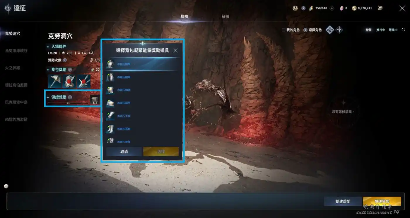 ·在遠征中滿足所有要求的獎勵獲得次數時,可獲得「背包凝聚能量獎勵道具」