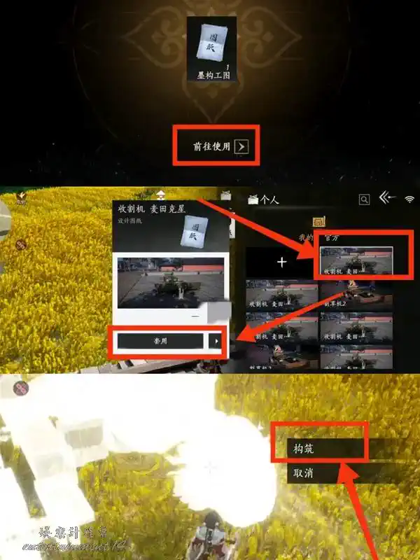 駕駛收割:獲取圖紙後,將其放置在家園或世界的麥田上。駕駛收割機在麥田中來回行駛進行收割作業。