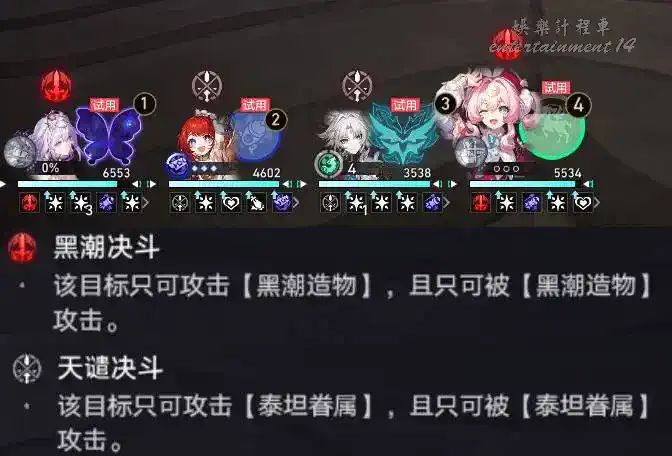 1.選擇【瑕蝶、風堇】應對黑鬥士,選擇【飛霄、緹寶】應對白衛士