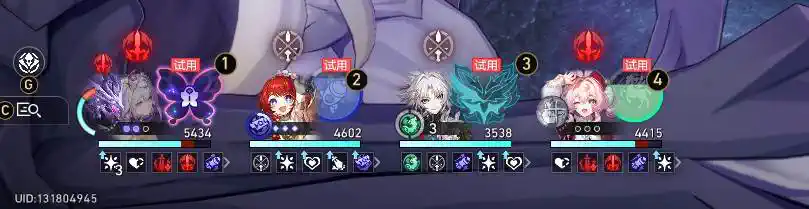 試用的瑕蝶、風堇、飛霄、緹寶