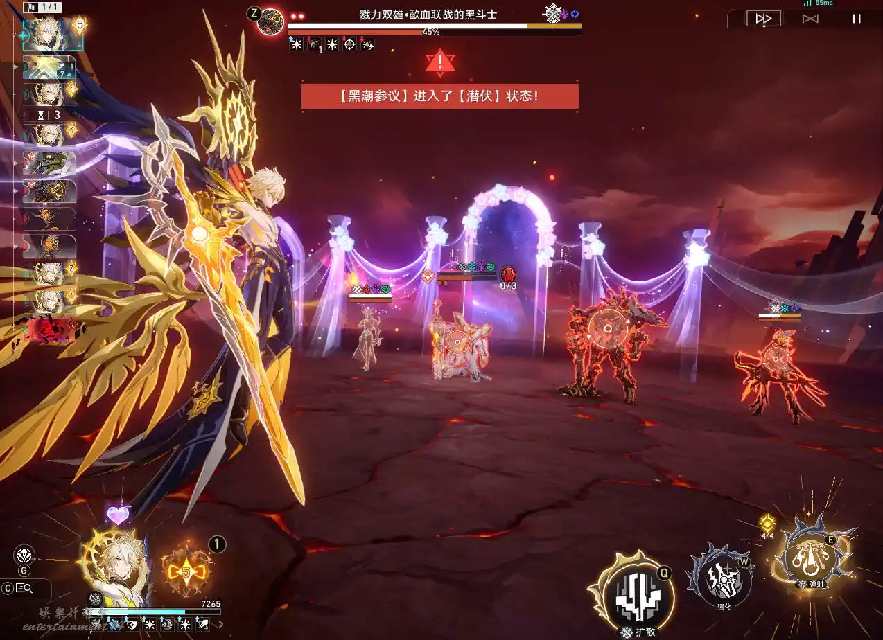 二階段瑕蝶開大拉條之後釋放連攜技+死龍滿噴大概能打35%左右血量