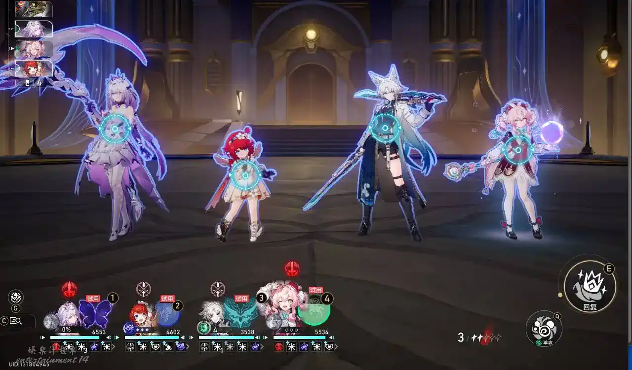 3.豐饒治療和存戶套盾可以給所有隊友生效,儘量攜帶有一個攻擊能力的生存位(風堇、靈砂、羅刹、騰荒、符玄、砂金)