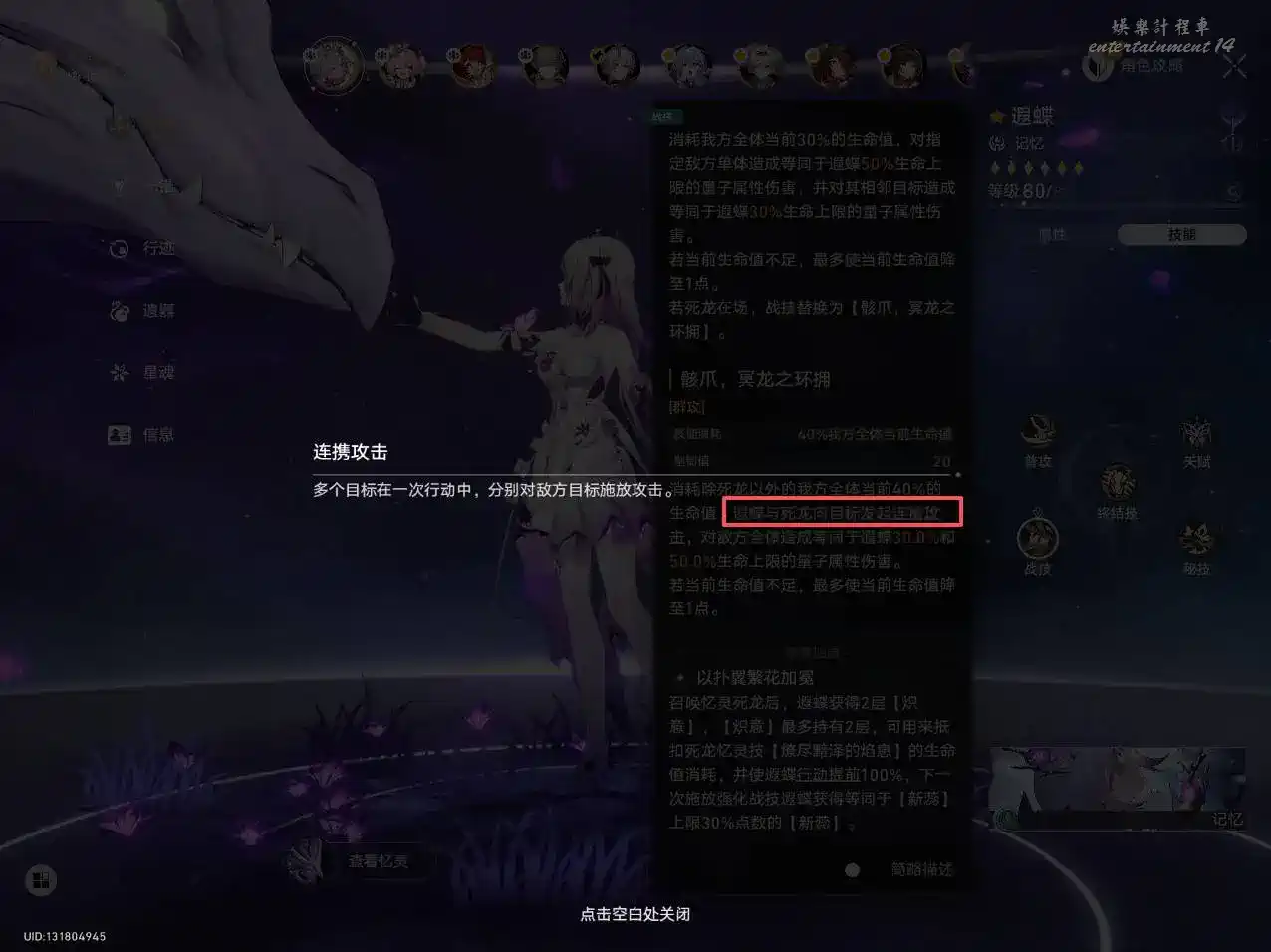2.攜帶有憶靈的角色(瑕蝶、風堇、記憶主、長夜月、阿格萊雅)
