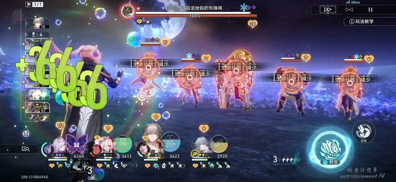 1.優先攻擊【生命計數】較少的敵方目標,盡可能讓我方【生命計數】較少的目標(滿星需要全隊保證生命計數不少於10)完成最後一擊,可以恢復【生命計數】。